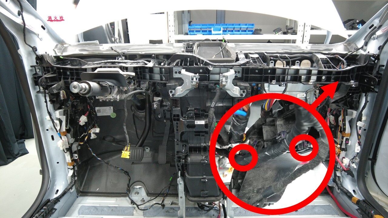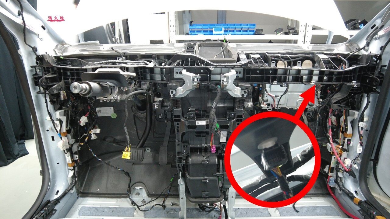 将线束夹安装到仪表板上靠近左侧控制器的位置。