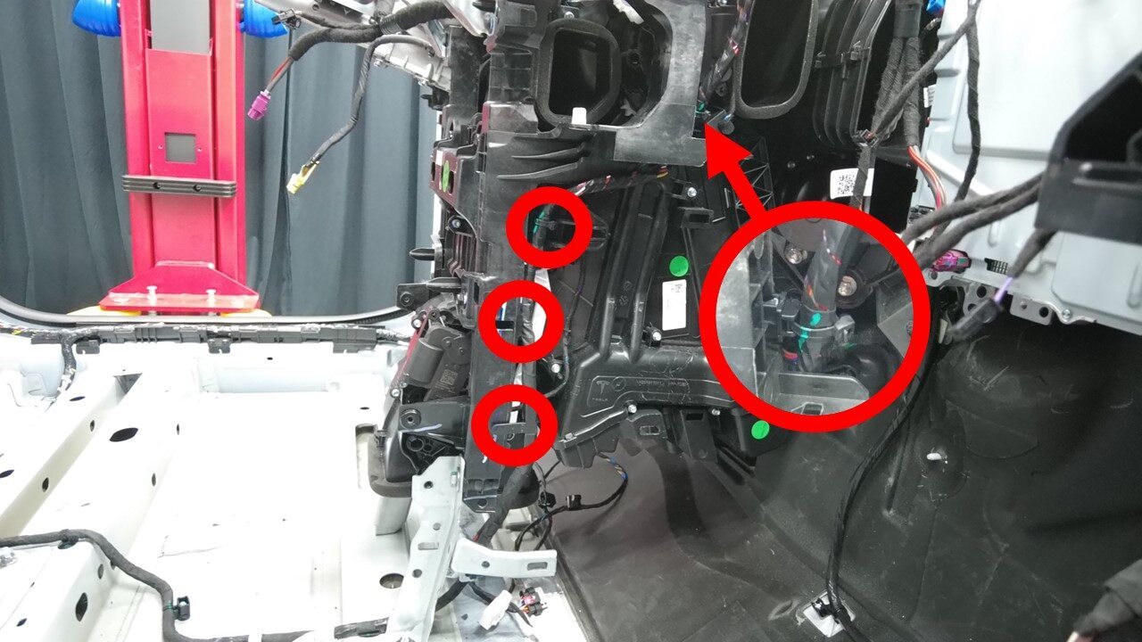 将 HVAC 线束夹(2 个)从仪表板安装支架上拆下。