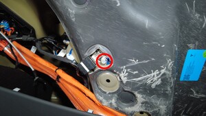 | 将左侧车身线束接地带固定到左后围板的螺栓 |