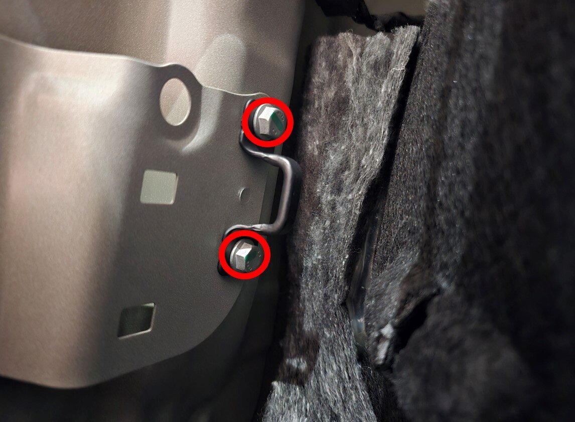 | 将左侧拉紧杆固定到车身的螺栓(2 个) |