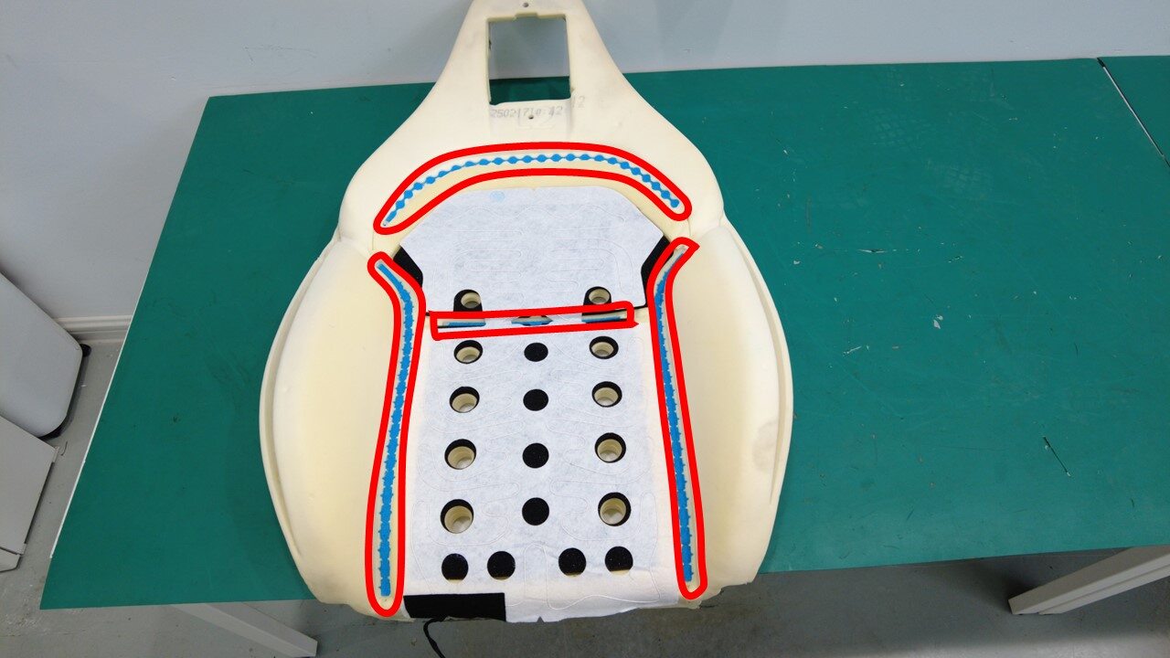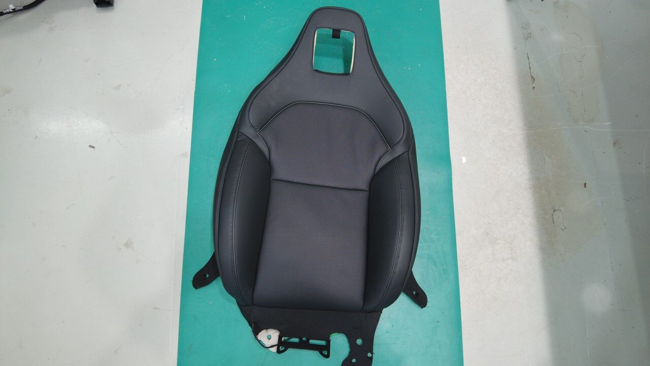 将驾驶位座椅靠背和泡沫安装到座椅靠背框架上。