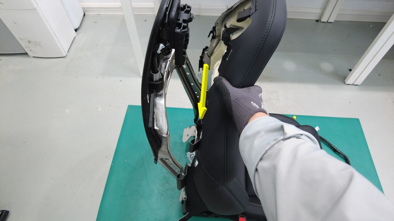 注确保加热器线束和座椅靠背总成均与座椅靠背框架完全分离。