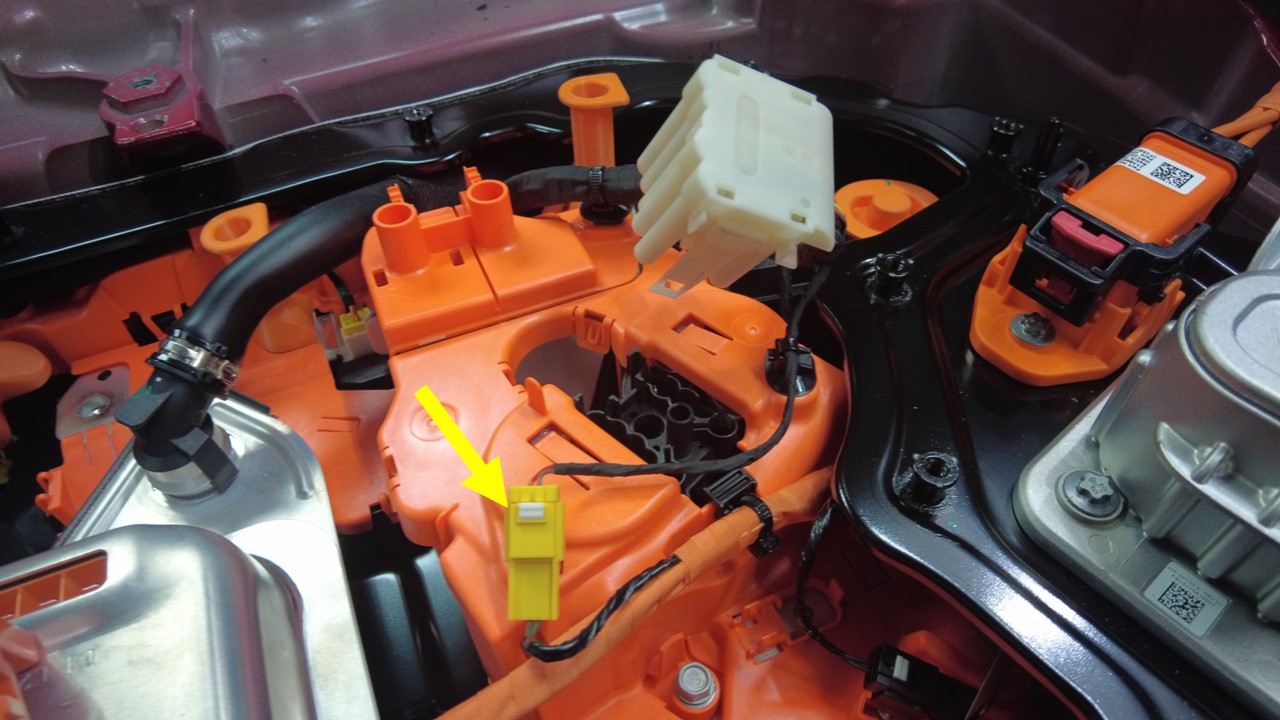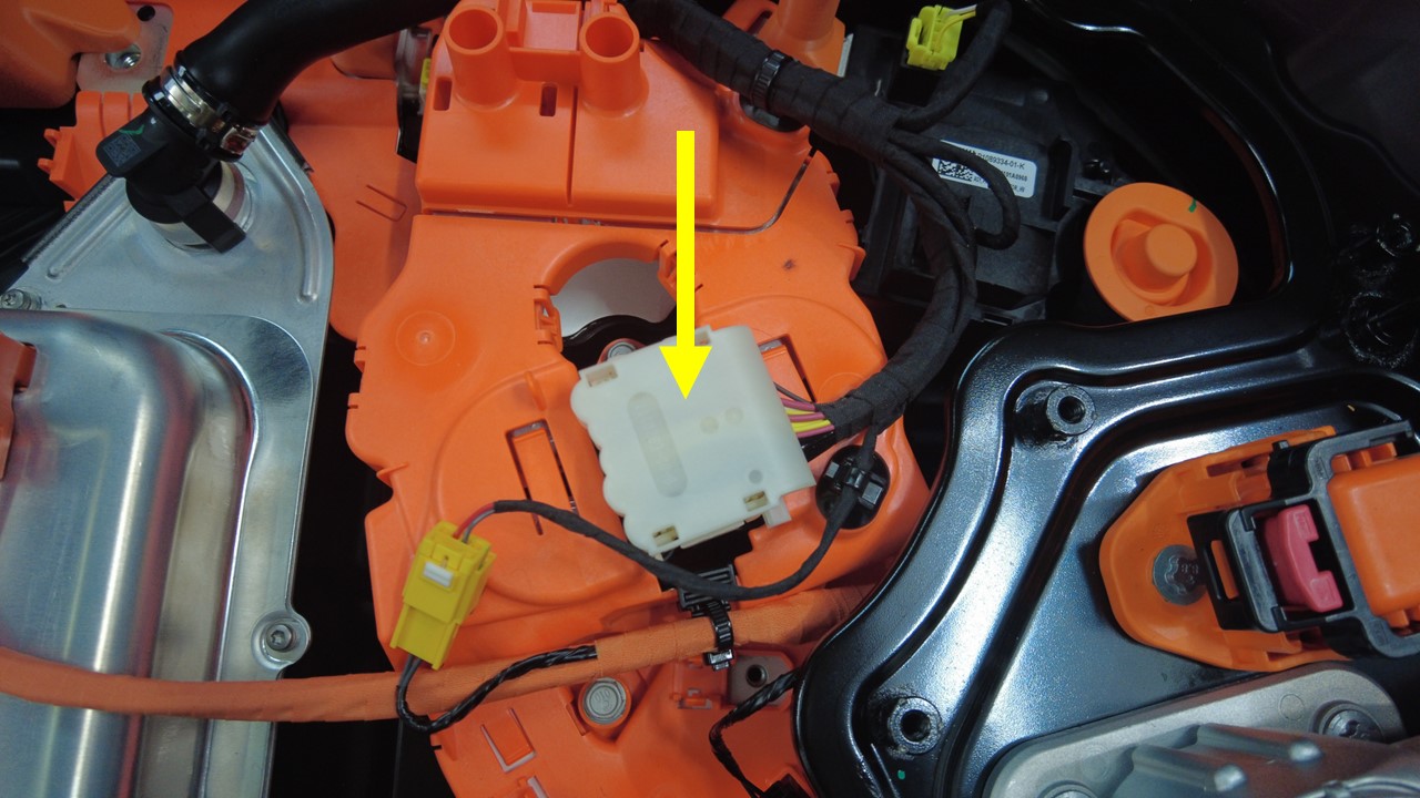 拆下快充触点开关盖板上的线束夹(3 个),将接线线束置于一旁。