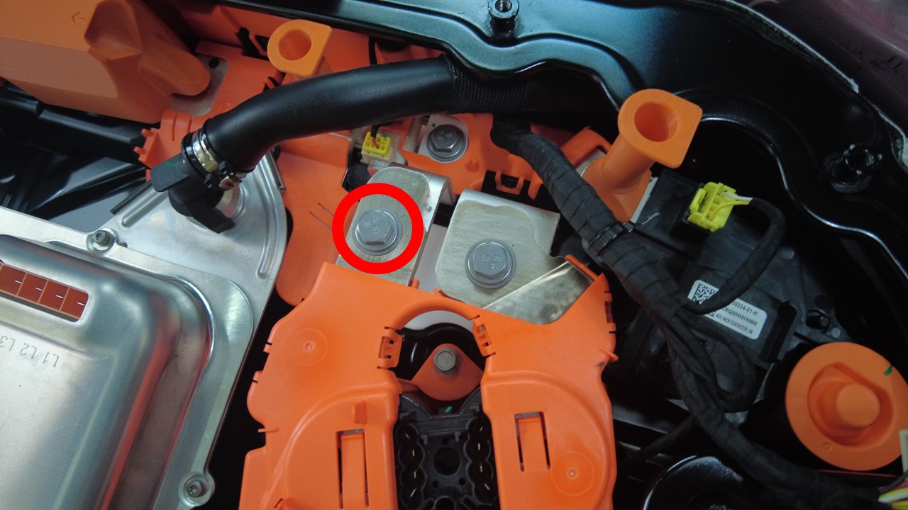 | 将快充触点开关总成固定到高压电池仓的螺栓(2 个) |