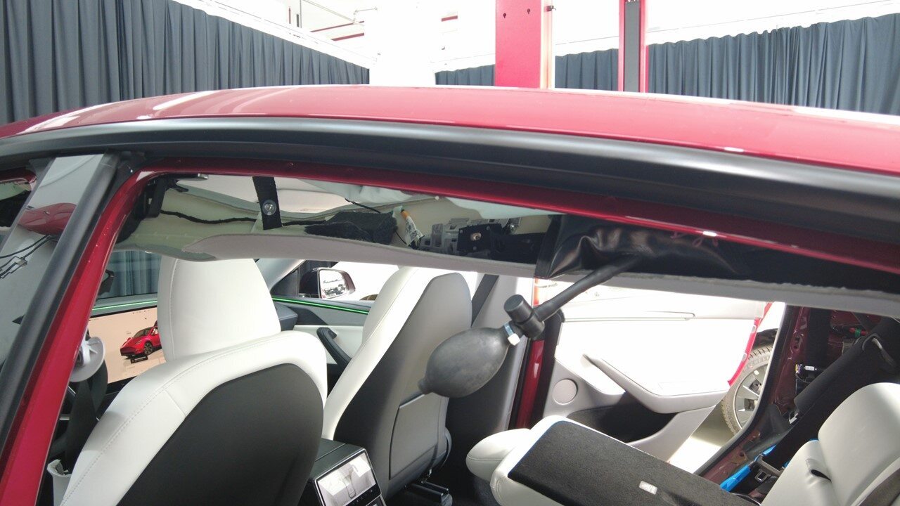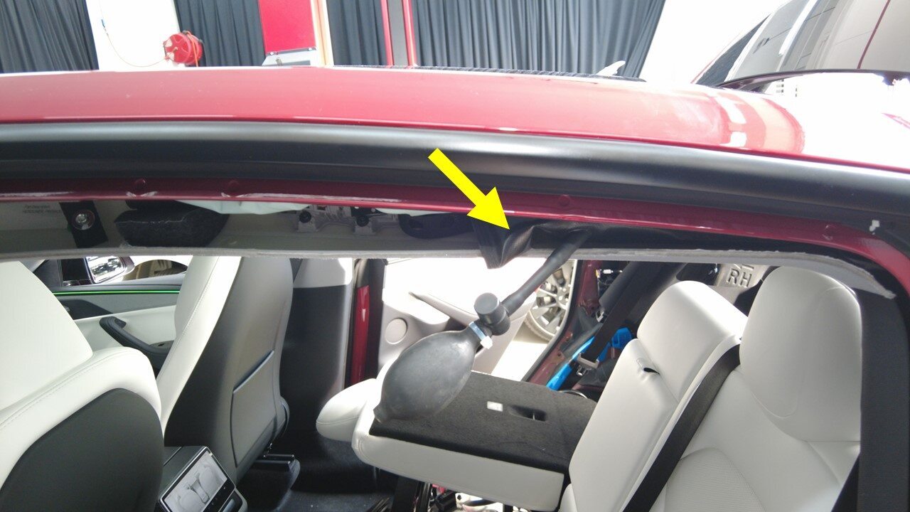 安装可充气袋,以撑起左侧顶篷。