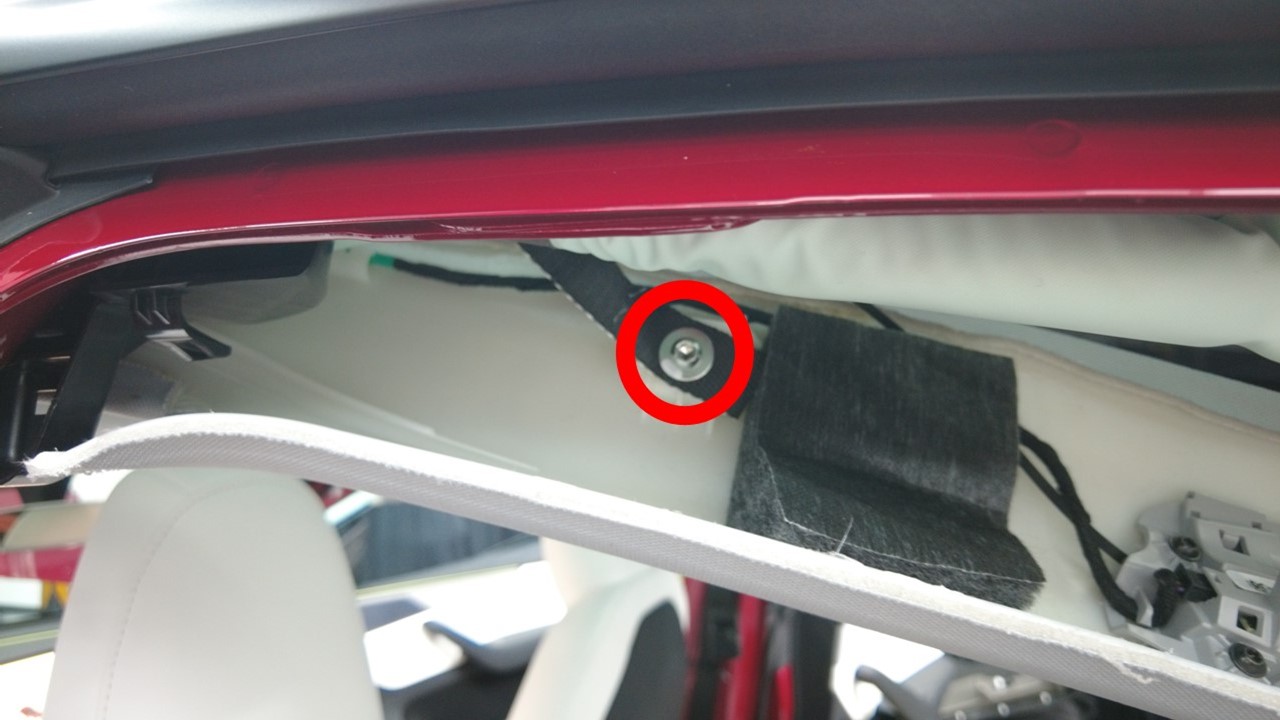 | 将左前顶篷固定到车辆的螺栓 |