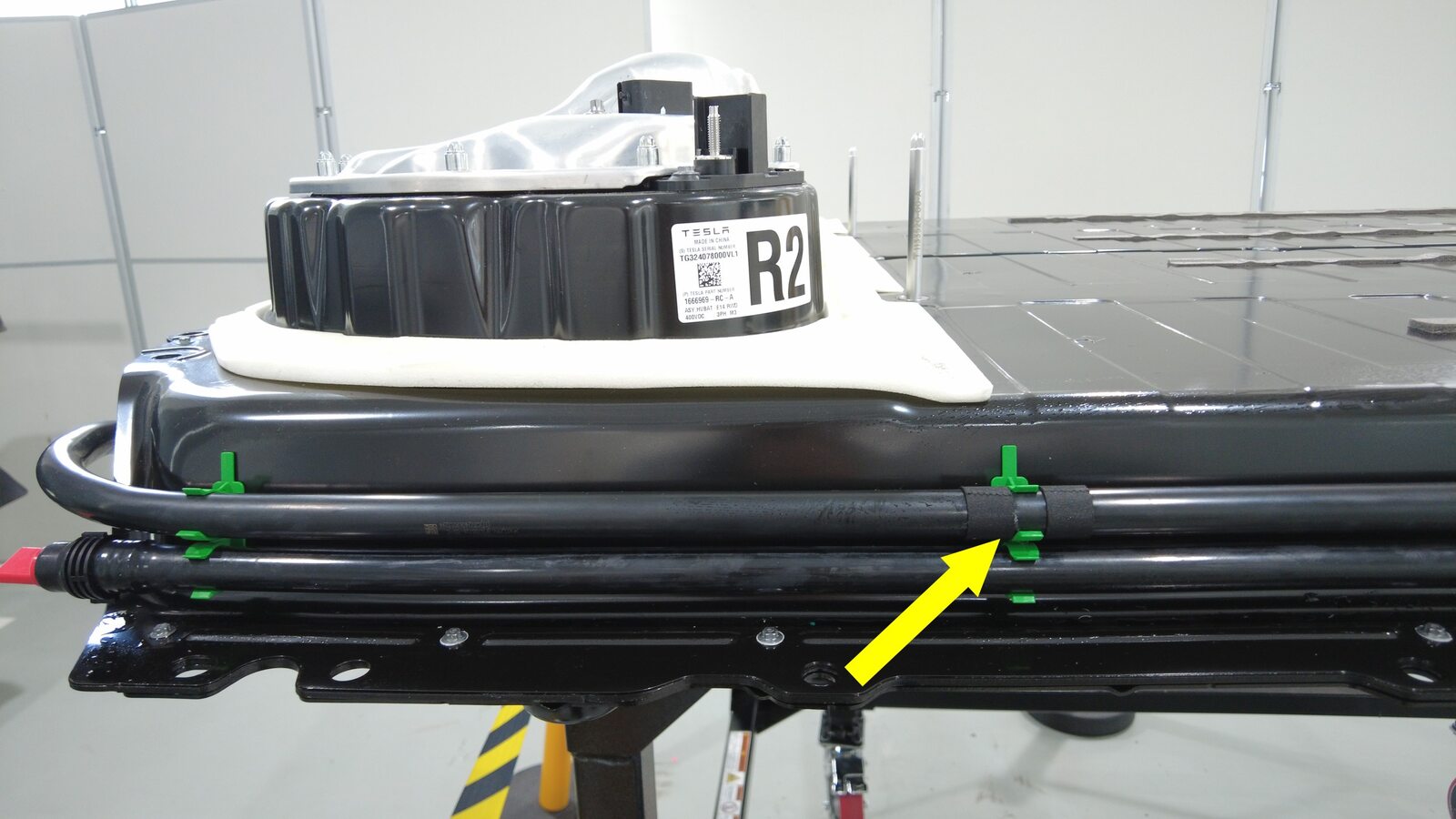 将后部动力总成供给软管从高压电池后部断开