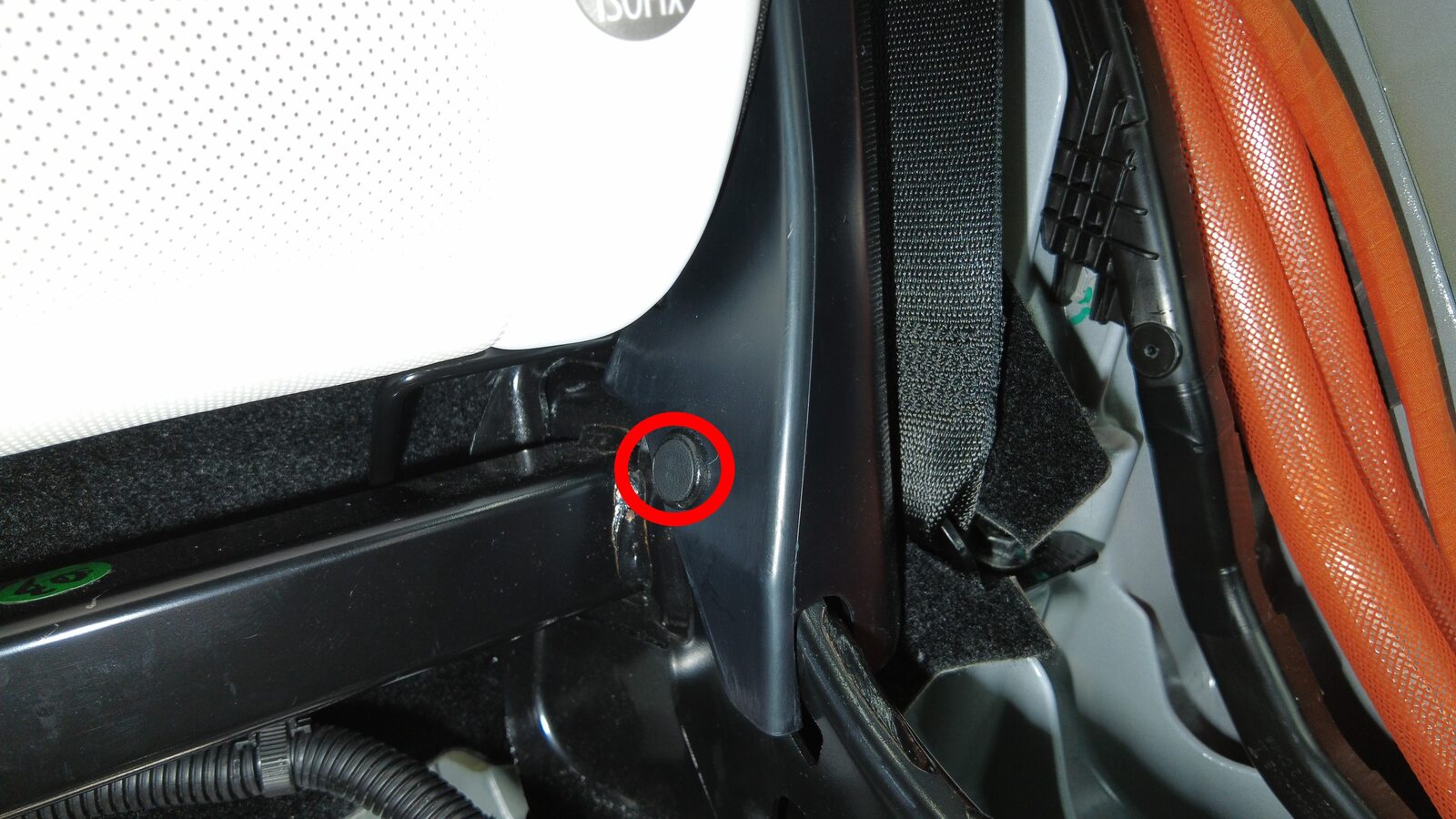 将 B 柱盖板外侧外件安装到左侧座椅框架上。
