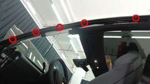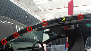 | 将左上亮条盖固定到车身的螺钉(9 个) |