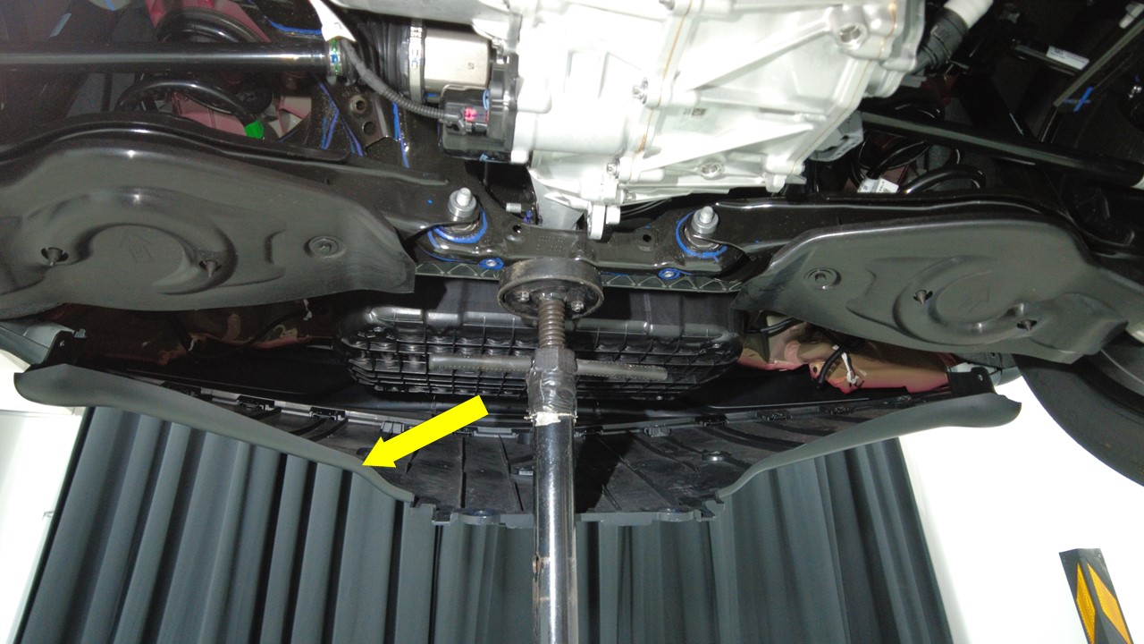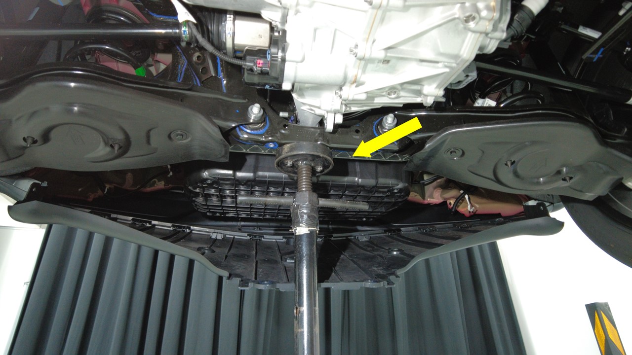拆下将后副车架支架固定到后副车架的左后和右后螺栓(2 个),然后小心地将支架拆下,注意双手握紧支架,以防掉落。