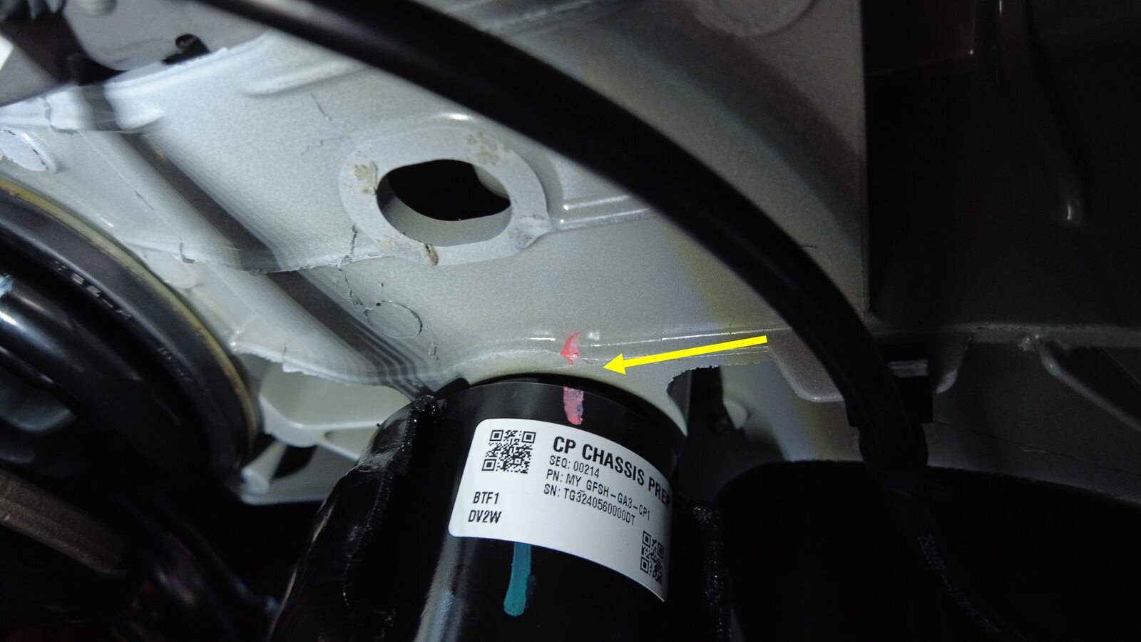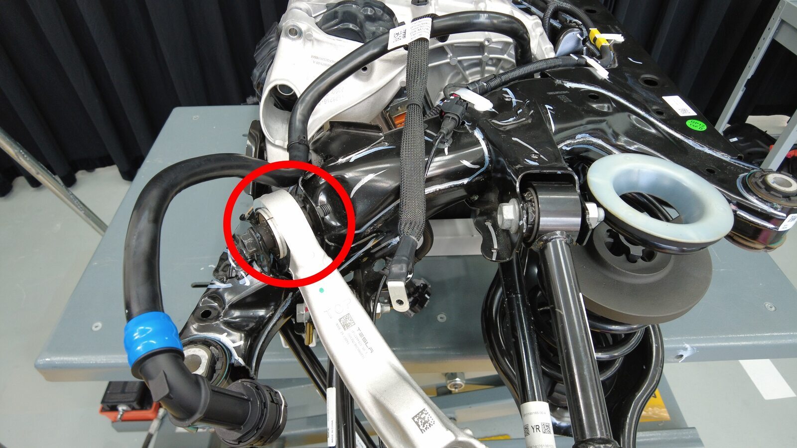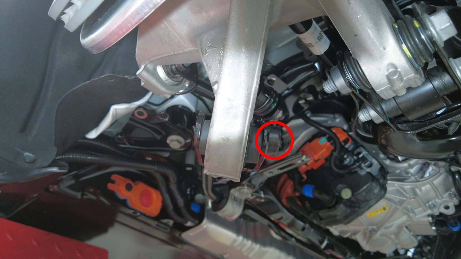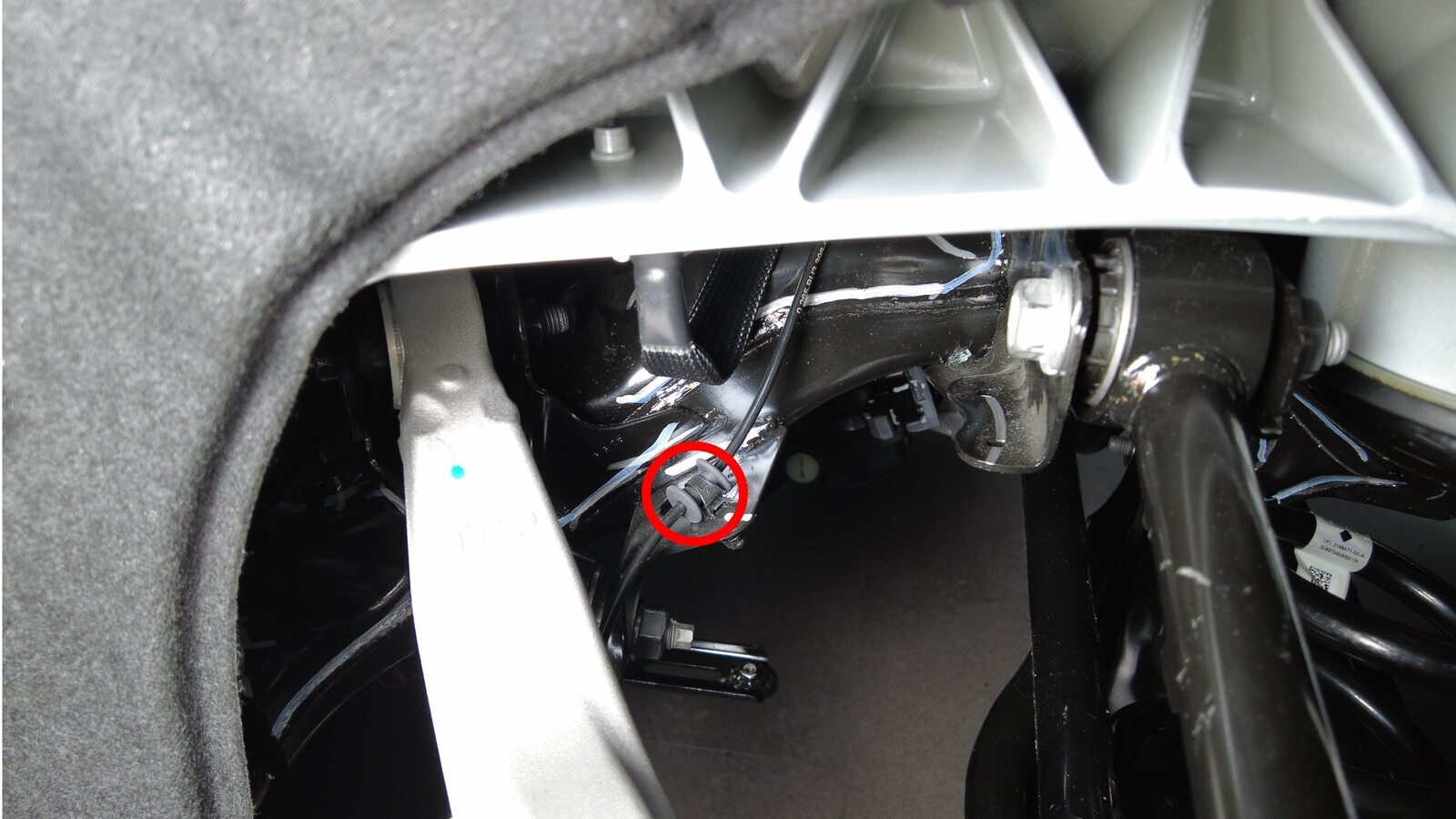 预装将左后下尾连杆固定到副车架的螺栓。