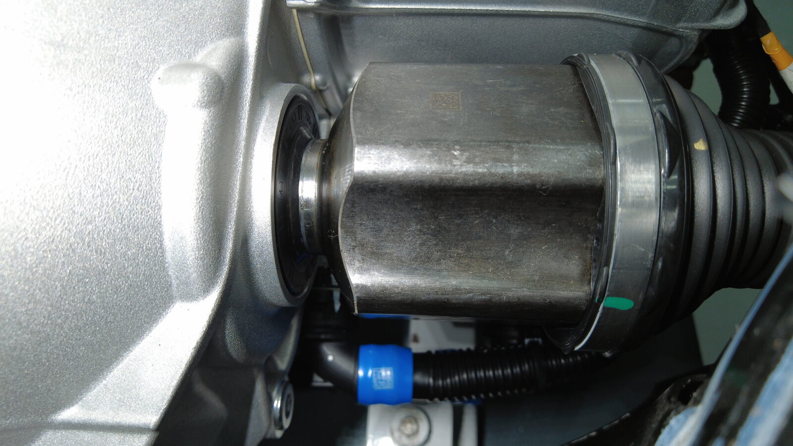 - 将左后半轴小心推入后驱动电机,直至轴端头与小齿轮轴接触并发出清晰的锁止声。
