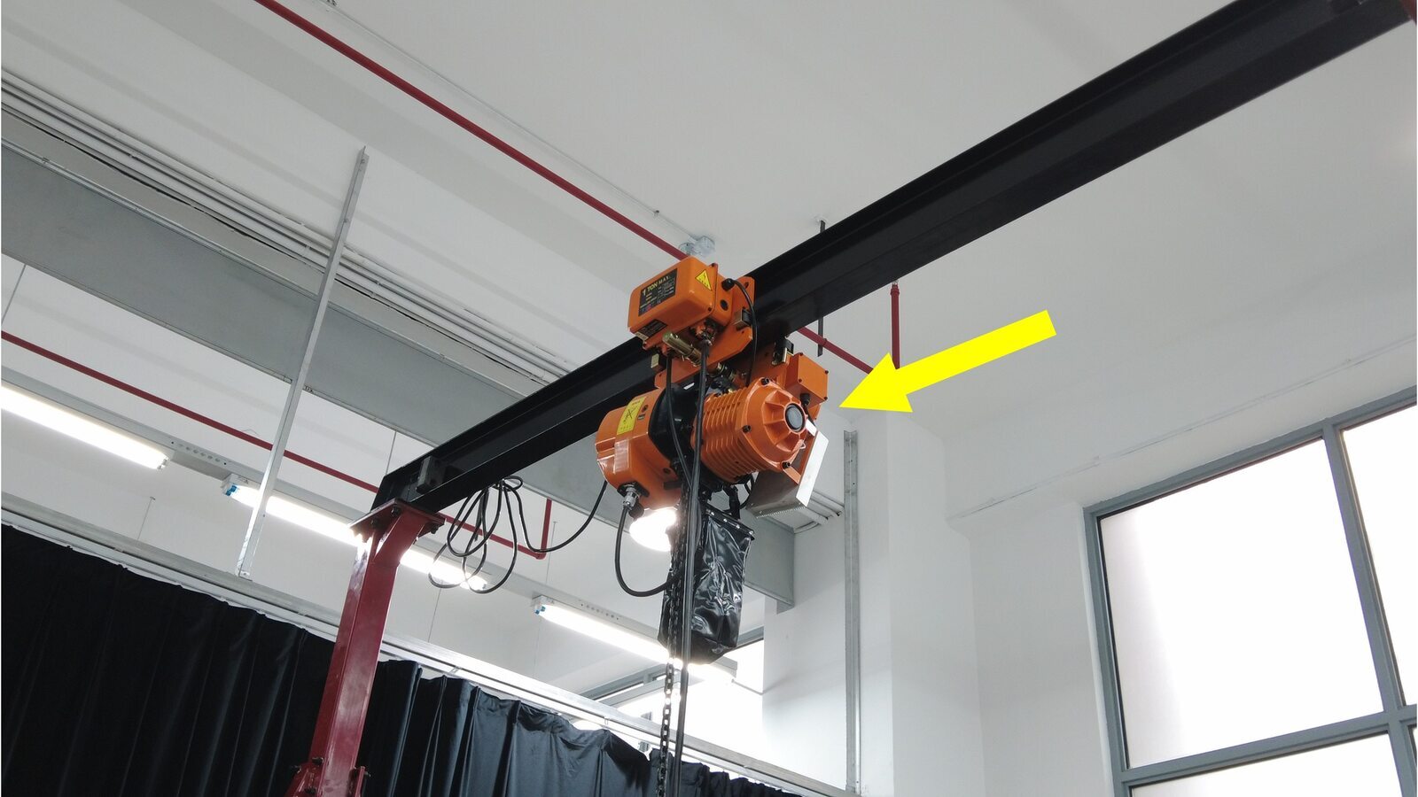 将驱动电机吊索工具固定到起重机架上。