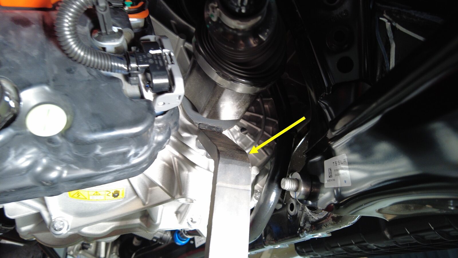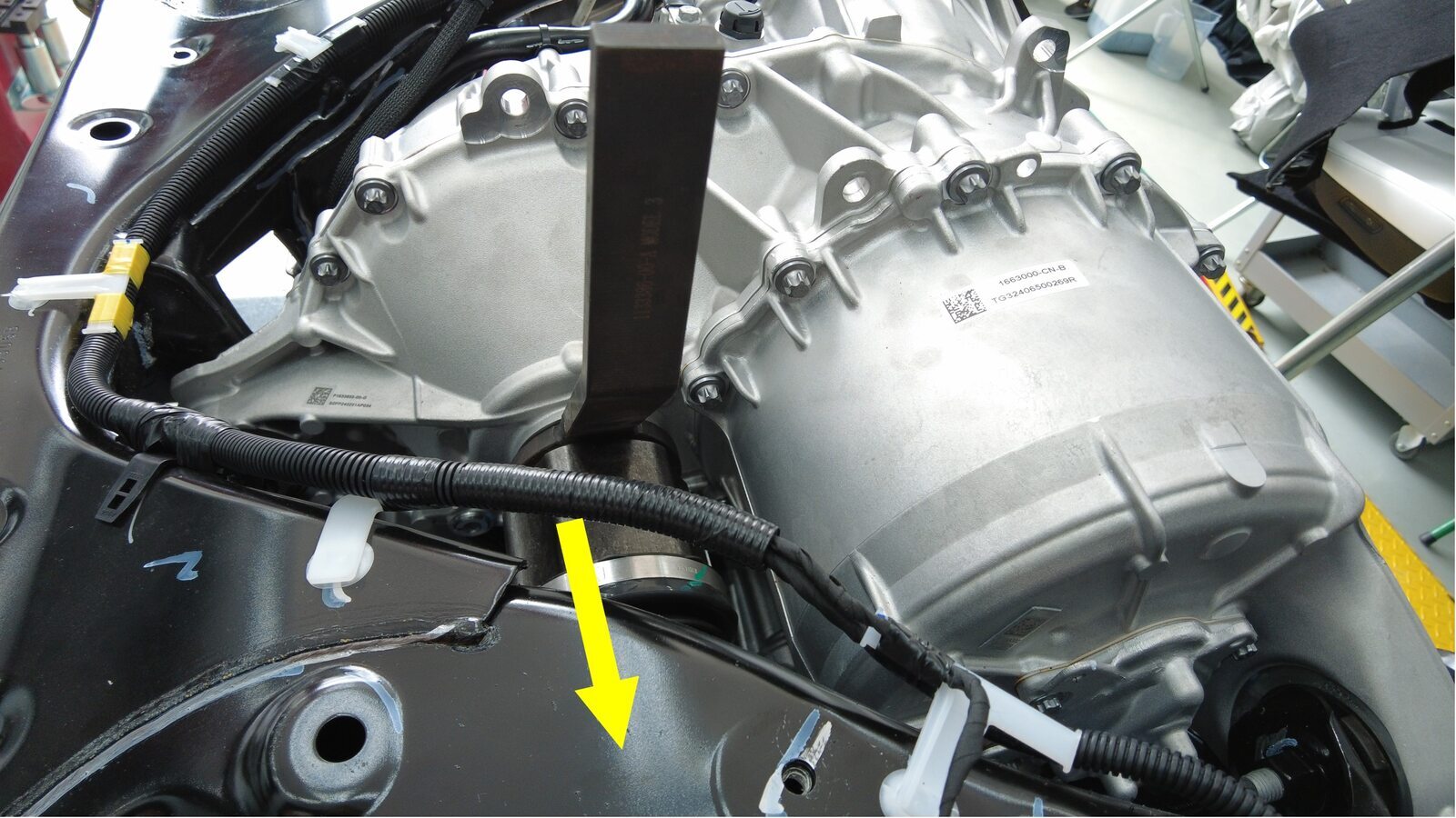 将右后半轴安装到后驱动电机中。
