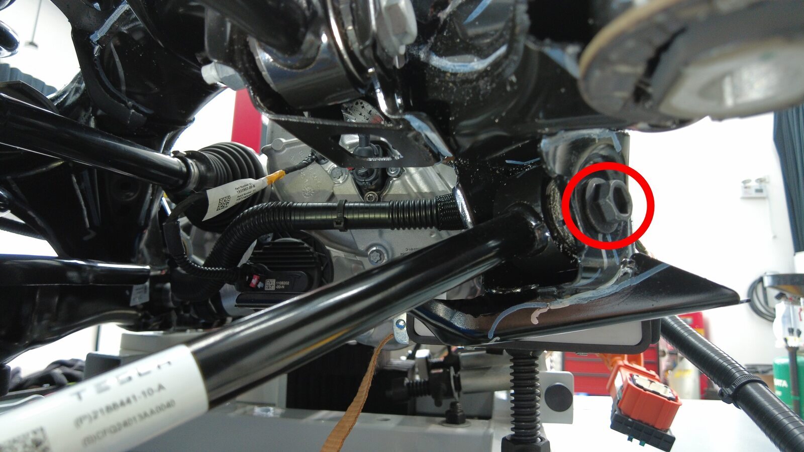 安装将后驱动电机高压线缆支架固定到高压电池的螺母。