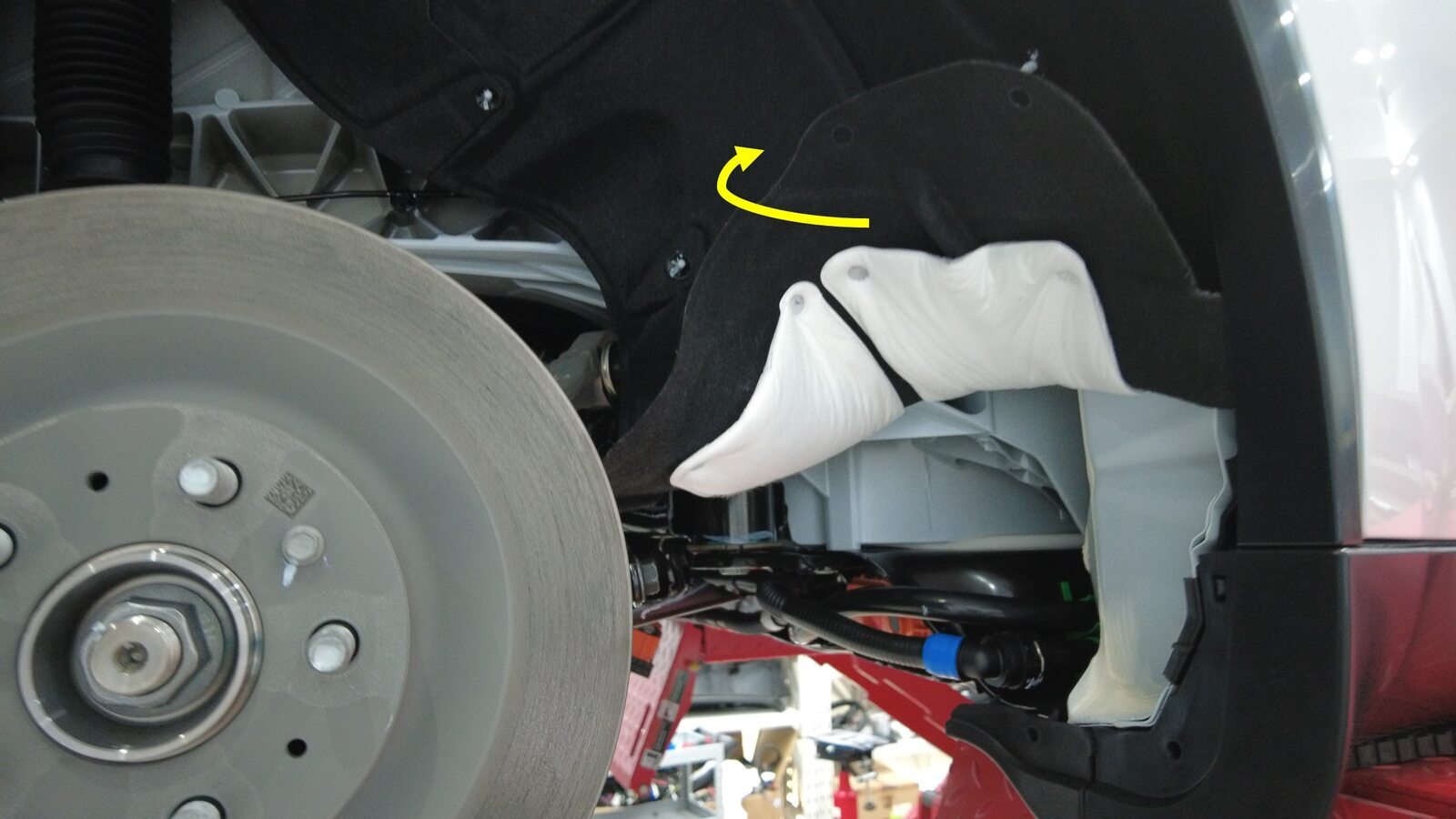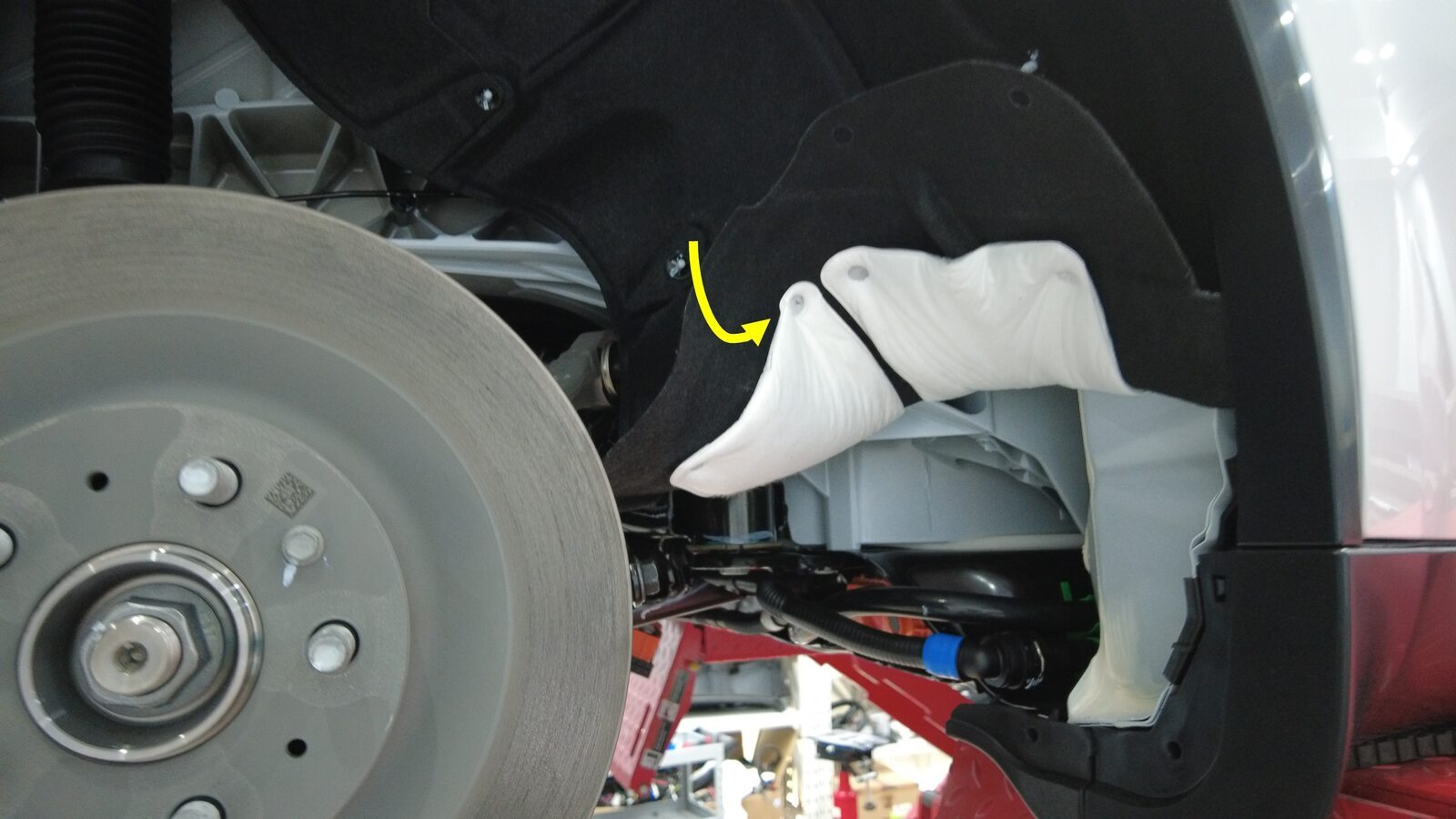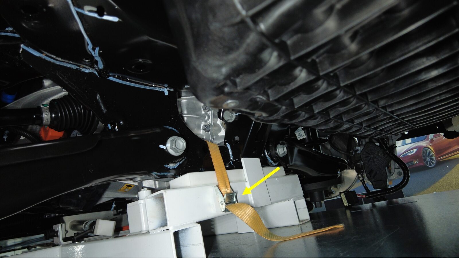 预装将右侧剪力板固定到高压电池的螺栓。