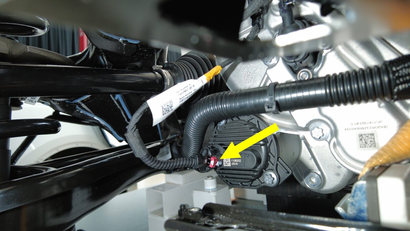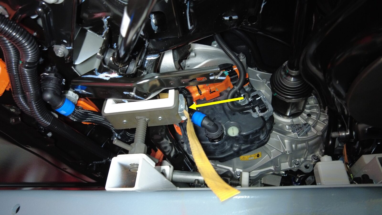 取下塞子,然后将后驱动电机变流器入口软管连接到高压电池后部