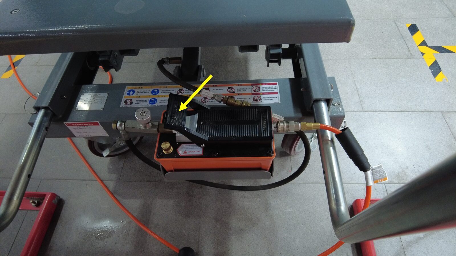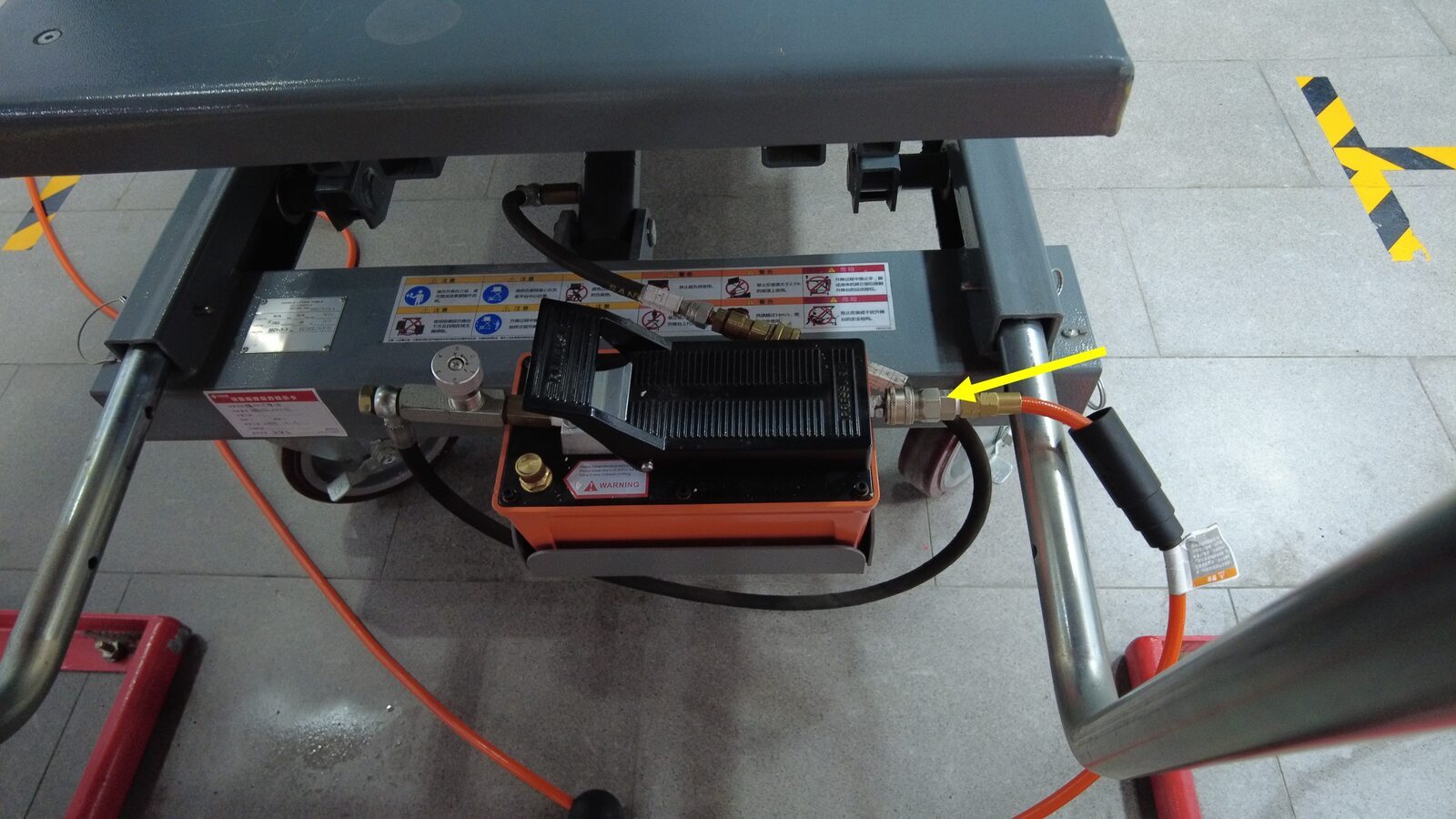 将供气装置连接到副车架举升工具。