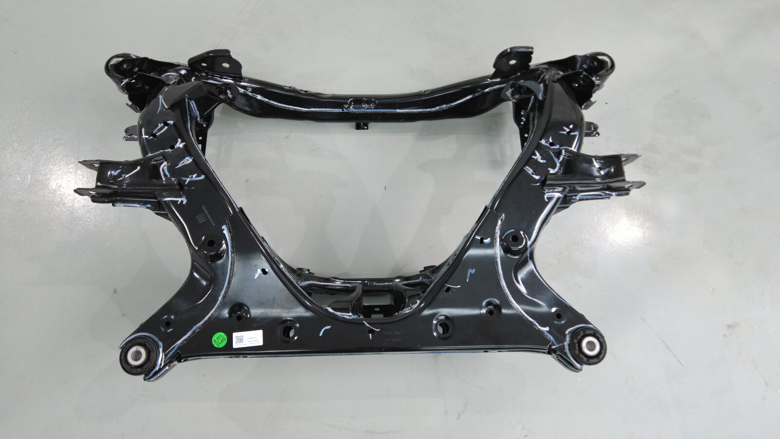根据此前所作标记对齐副车架和车身,使副车架尽可能恢复至原始位置。