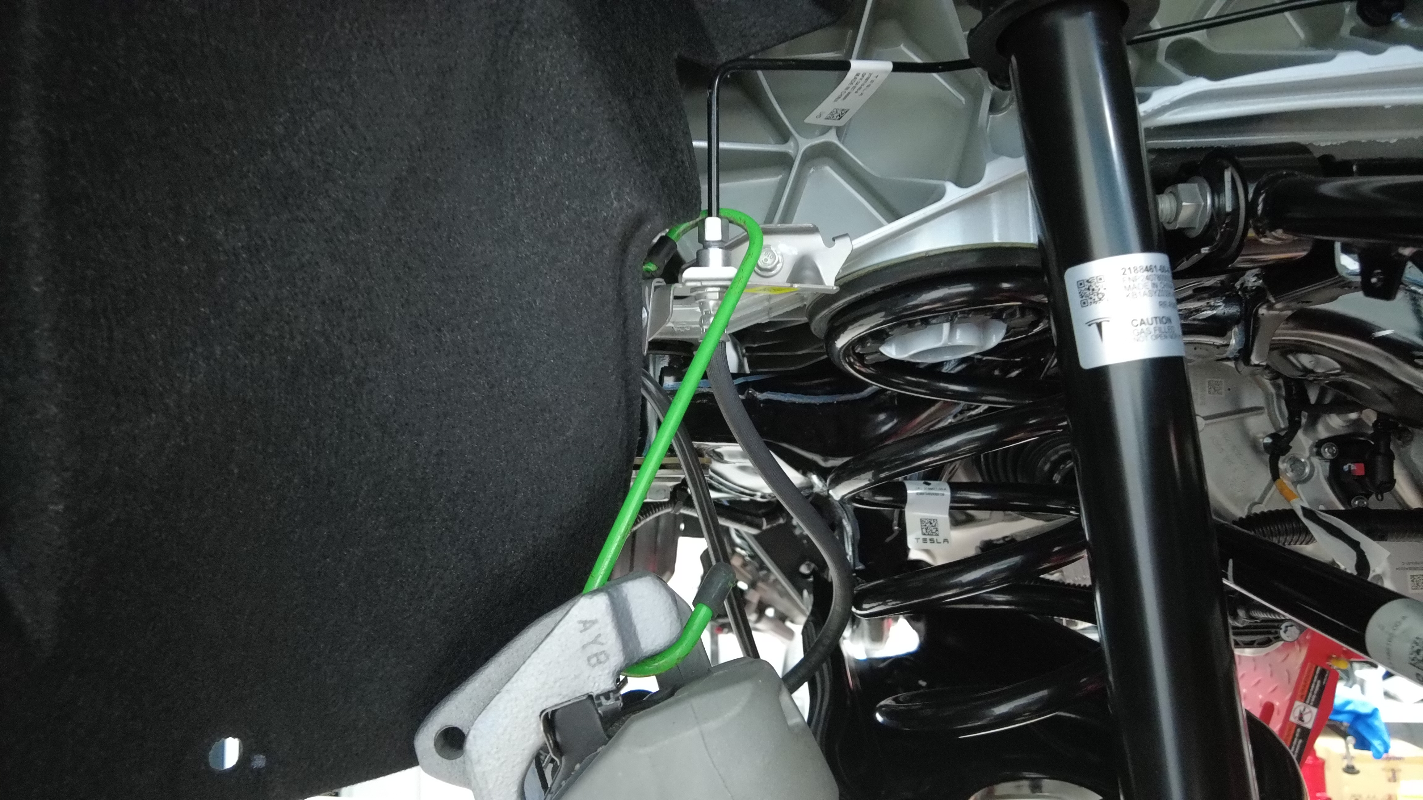 在高压电池右后侧下方放置一个冷却液排放容器。