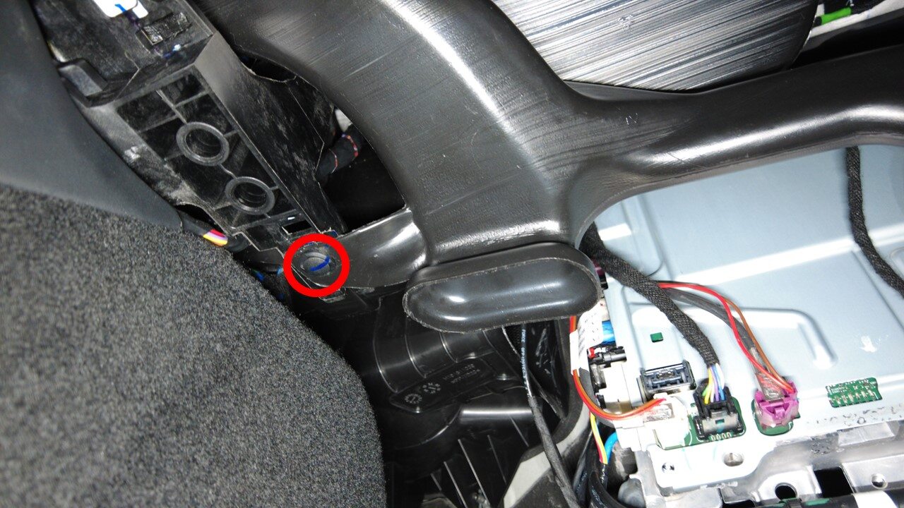 安装将副驾位脚部空间风管固定到仪表板支架的推拉式卡子。
