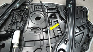 拆下覆盖升降器滑轨紧固件的塞子(2 个)。