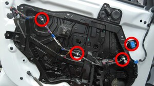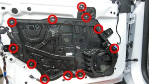 | 将车窗升降器固定到封闭板的螺钉(4 个) |