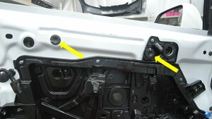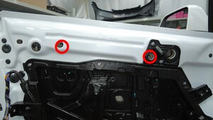 将左前车门封闭板总成放置在车门上,然后安装将升降器滑轨紧固件固定到车辆的螺栓(2 个)。