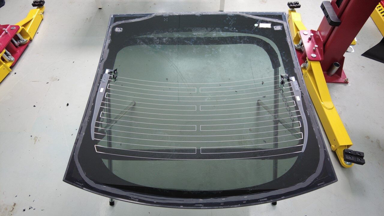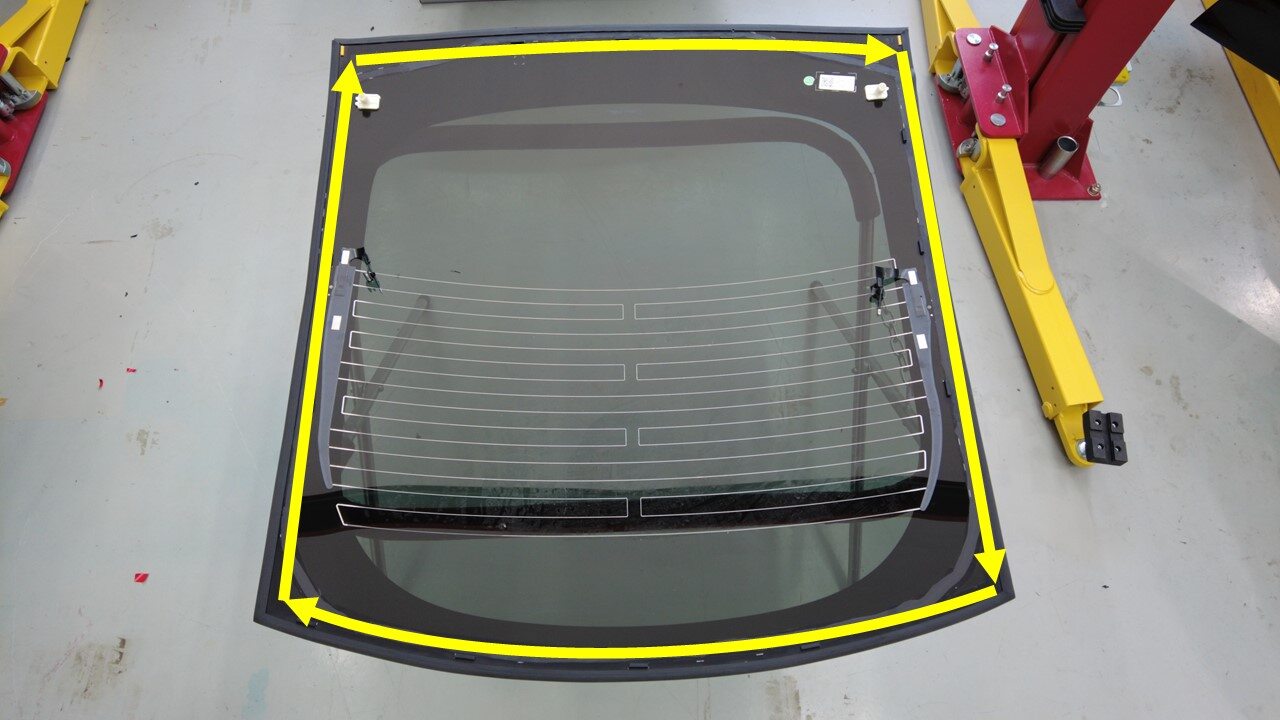 在车辆上沿着聚氨酯路径以及在拆卸背光灯玻璃期间受损区域涂抹聚氨酯底漆。