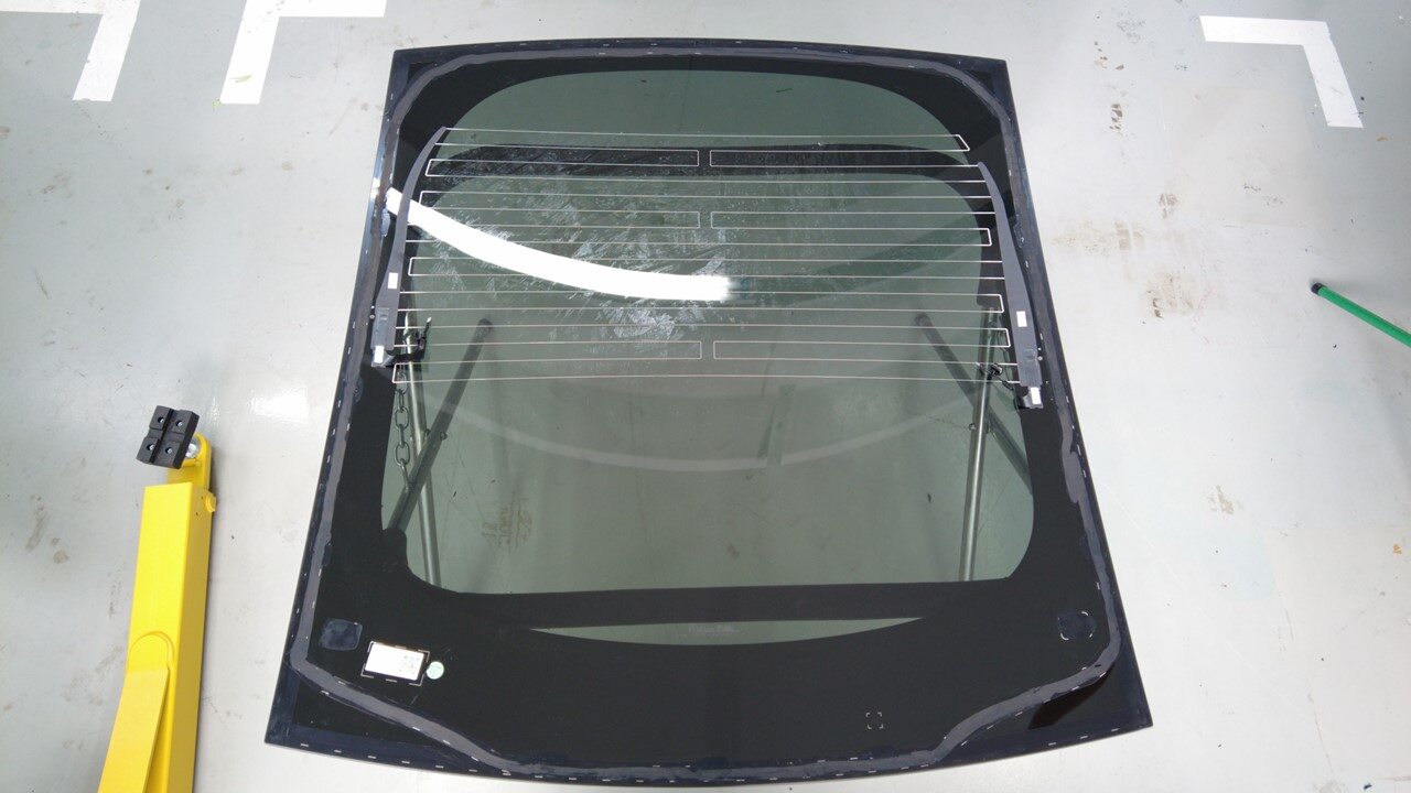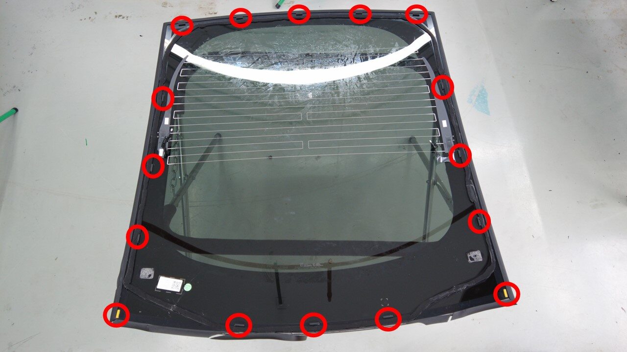 聚氨酯凝固期间,使用遮蔽胶带将背光灯玻璃固定到车身。