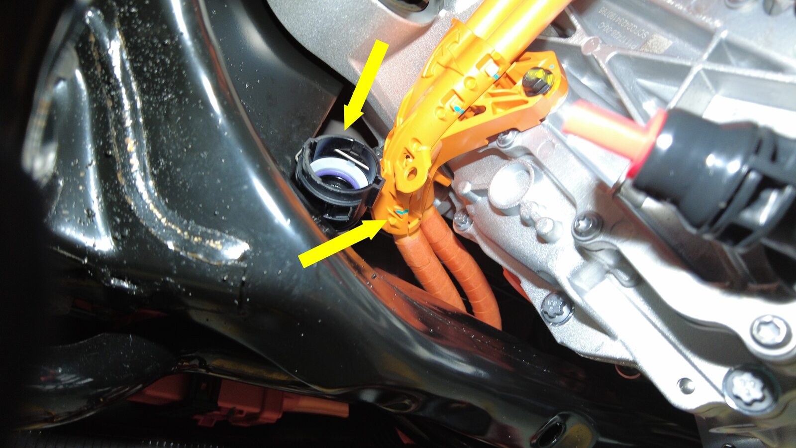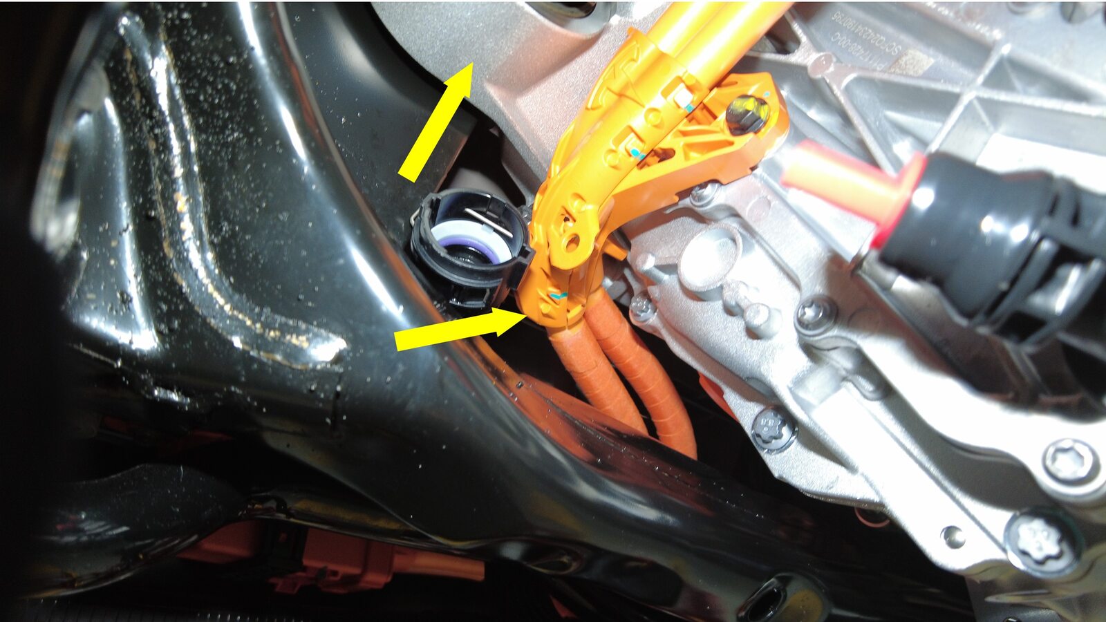 注将高压线束朝向后驱动电机推动,然后轻轻旋转变流器入口软管。