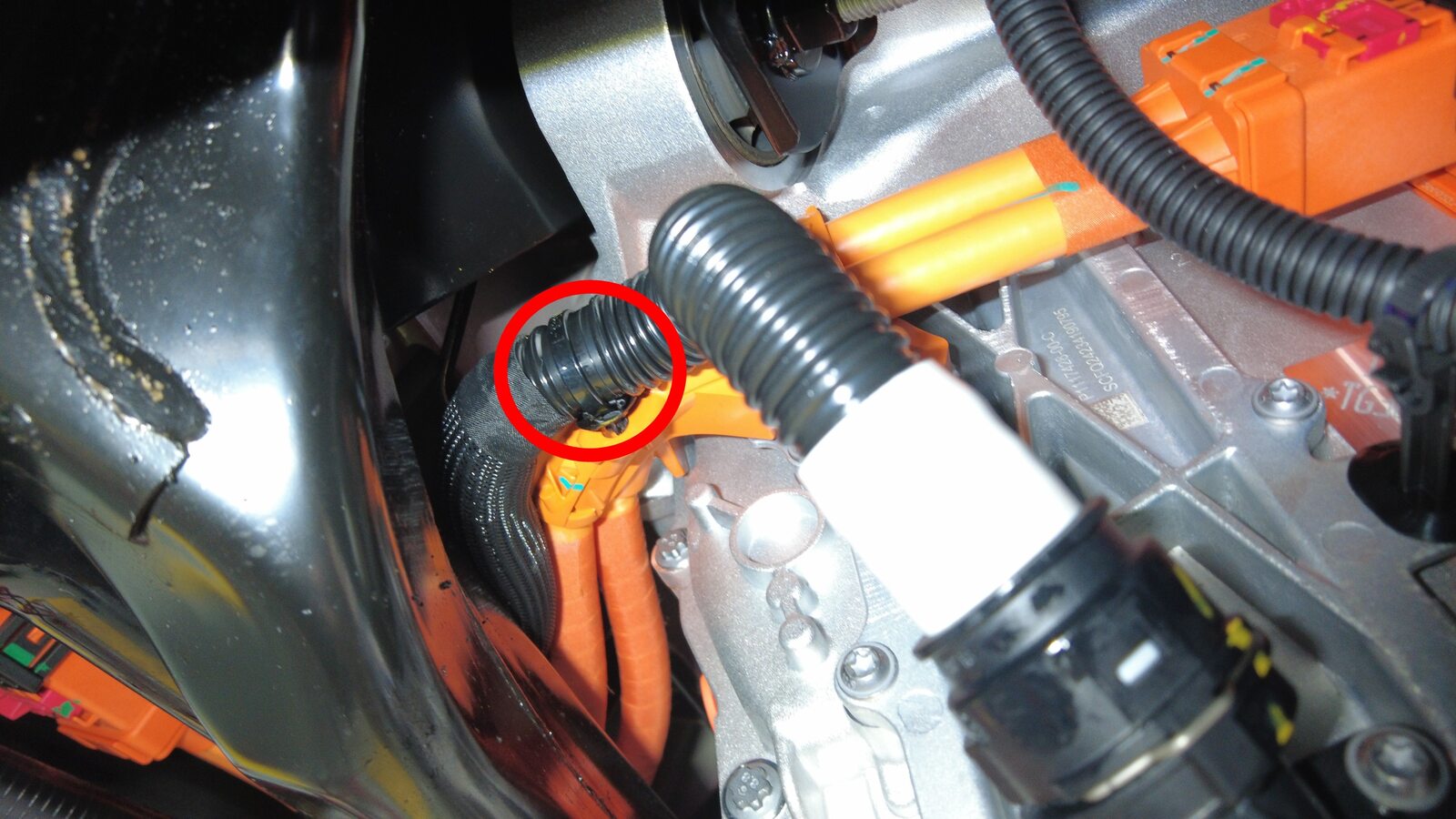 将后驱动电机变流器入口管从后驱动电机高压电缆线束上松开。