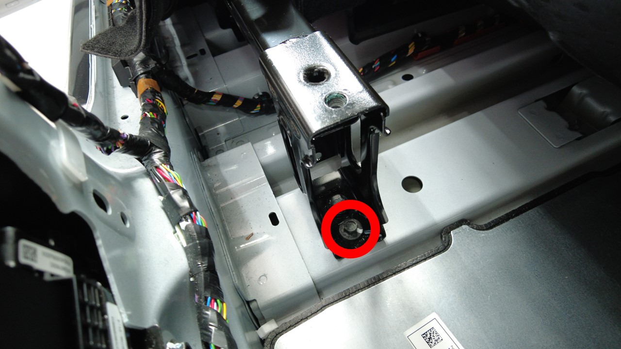 拆下并弃用将驾驶位座椅外侧座椅升降器前部固定到车辆的螺栓。