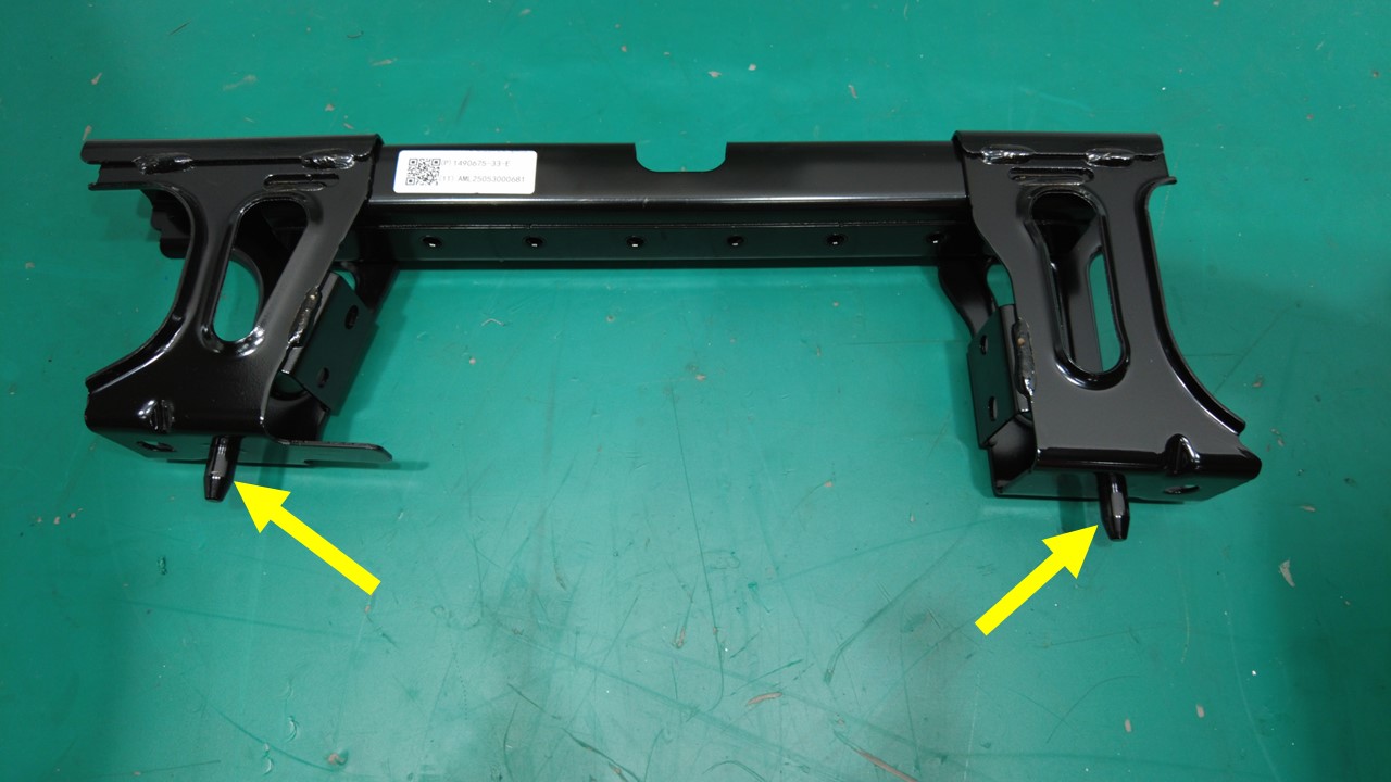 将定位锁片(2 个)与车辆上孔洞对齐,然后将座椅左侧外升降器放置好,以备安装。