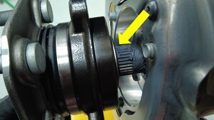 - 安装之前,检查 LH 前轮毂上的调节环:使用磁场观察卡确保调节环上的磁场未被损坏。