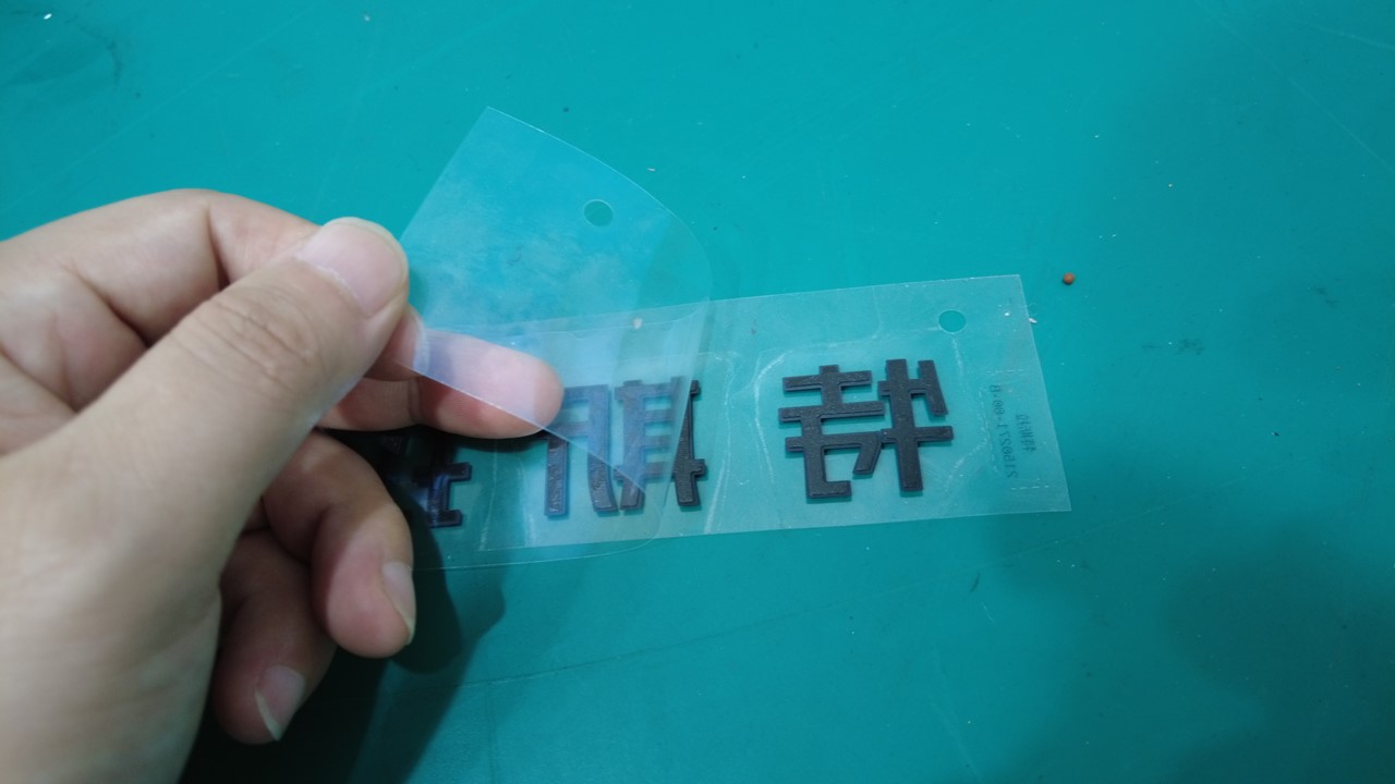 注确保徽标各边缘稳妥固定在掀背尾门表面。