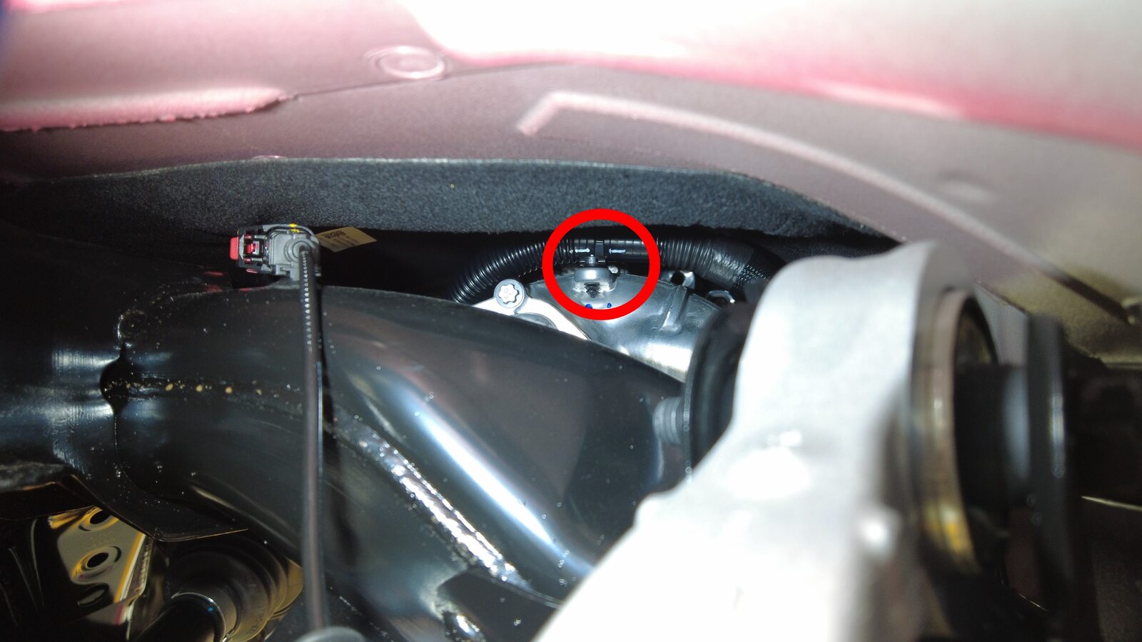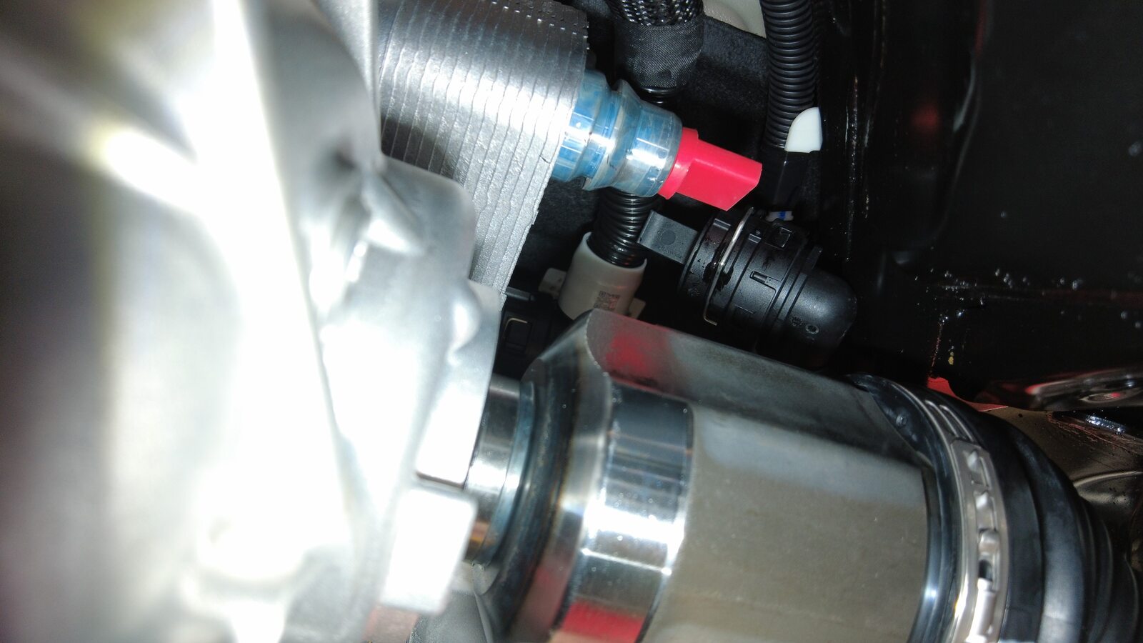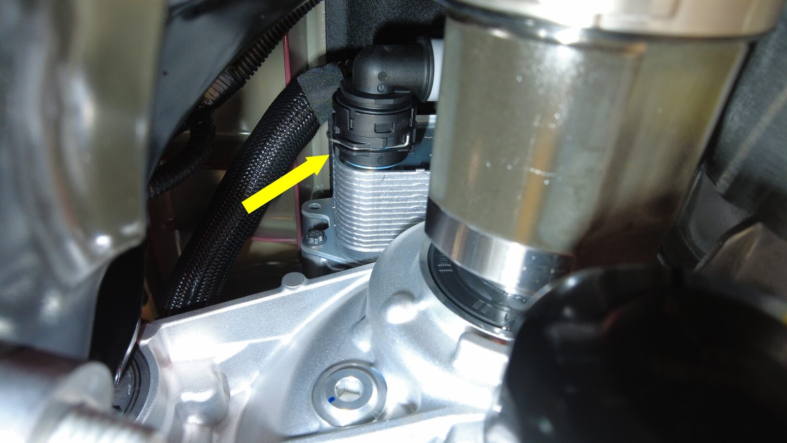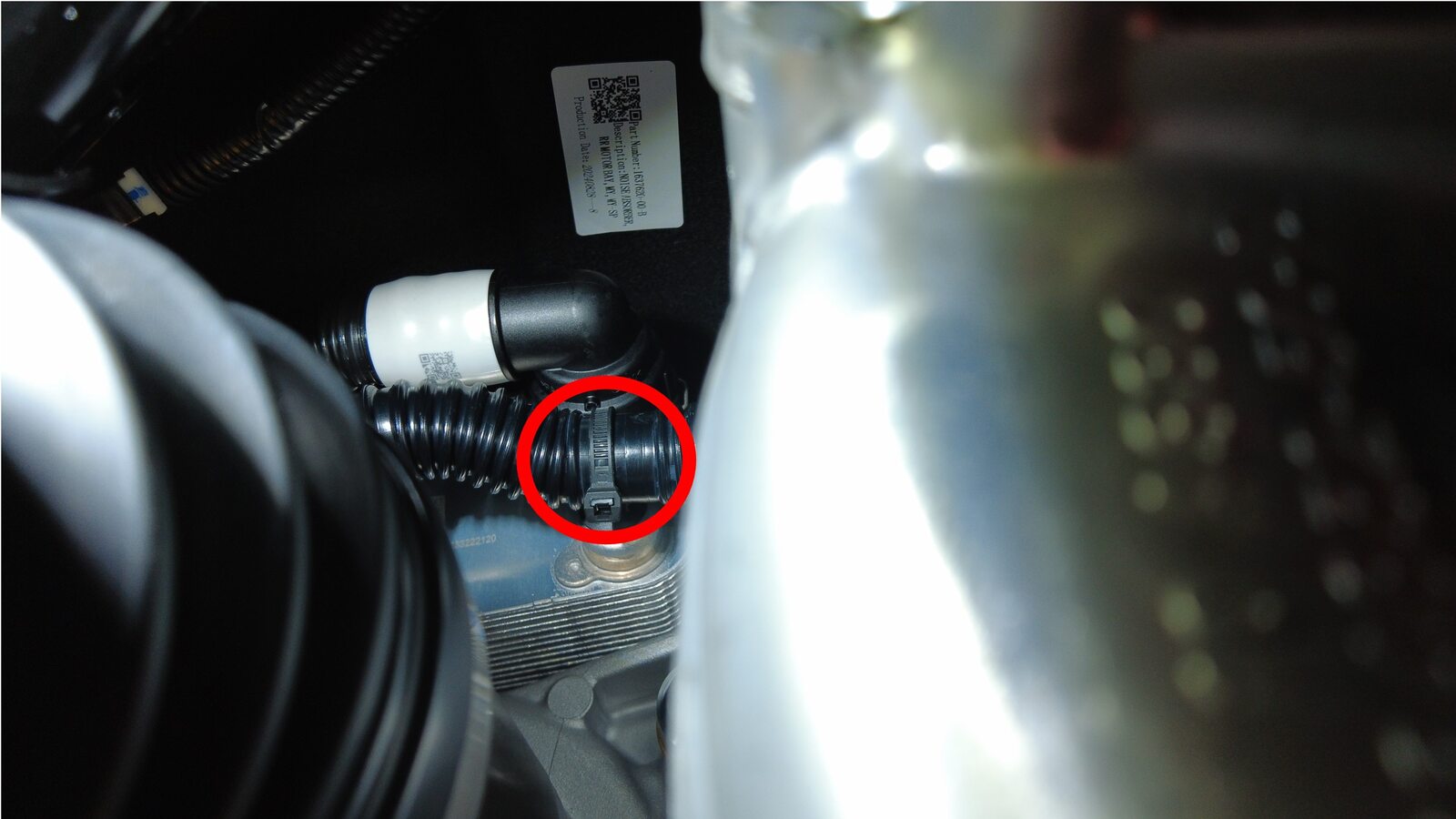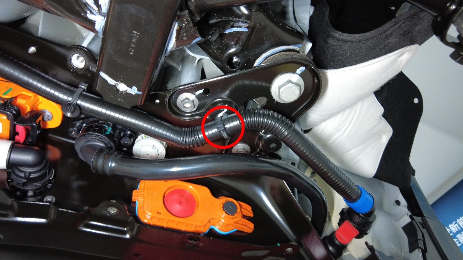 将冷却液出口软管从后驱动单元热交换器上松开,然后堵住两个软管末端。