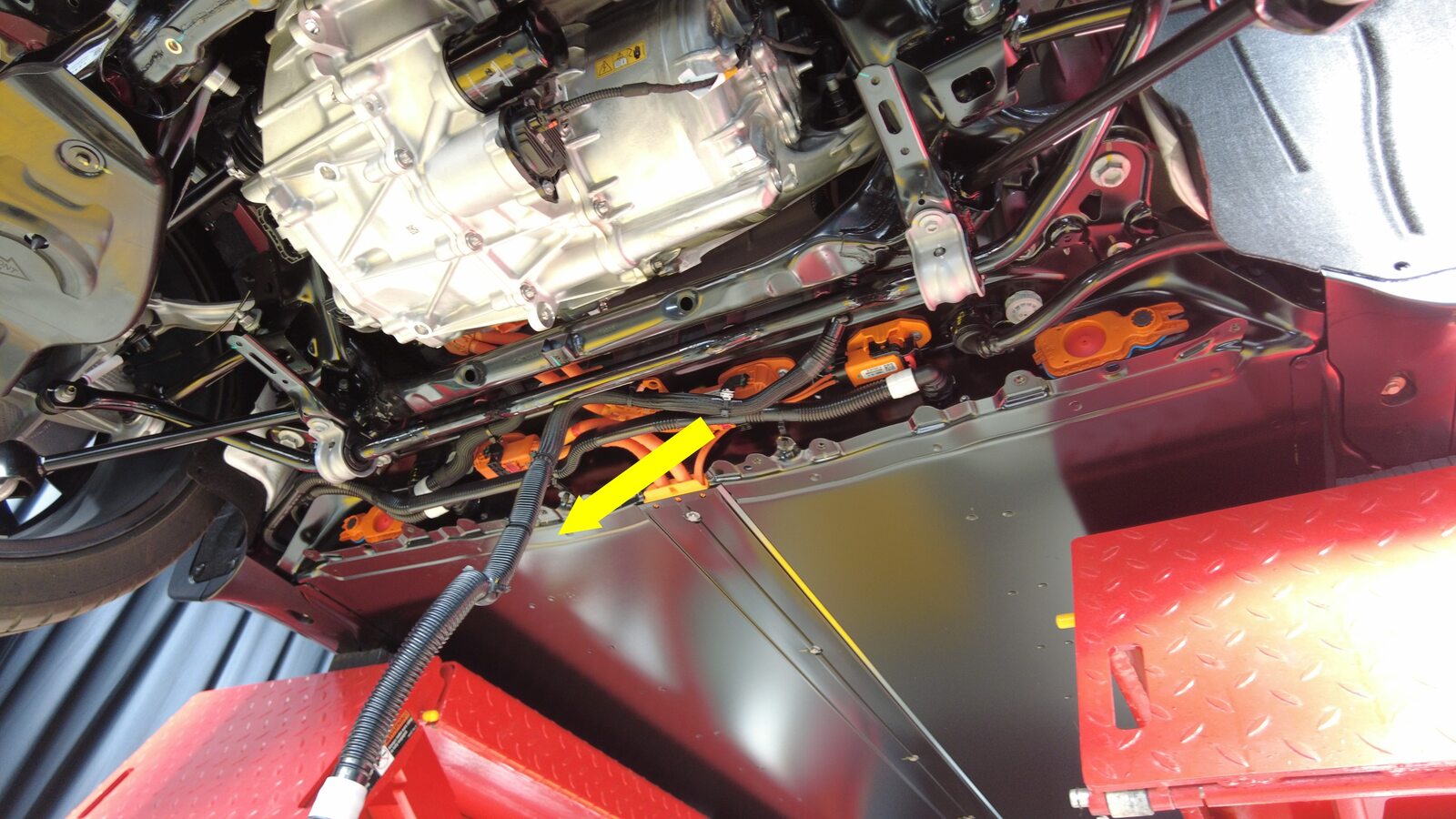 - 将冷却液排放装置放置在高压电池右后侧下方。