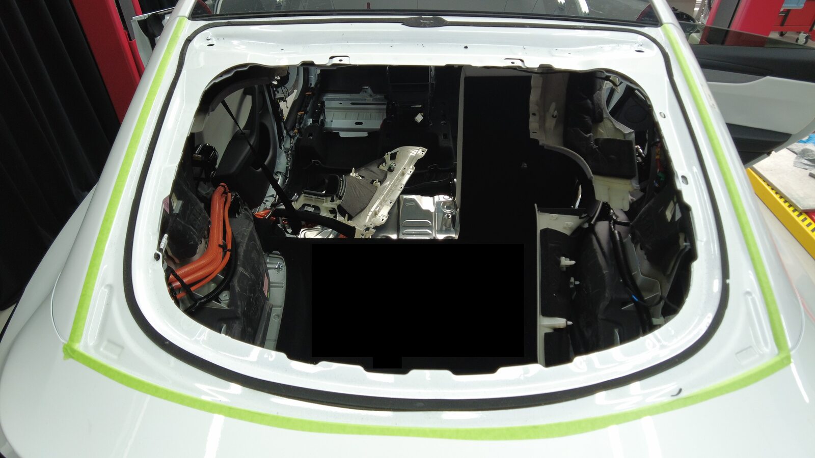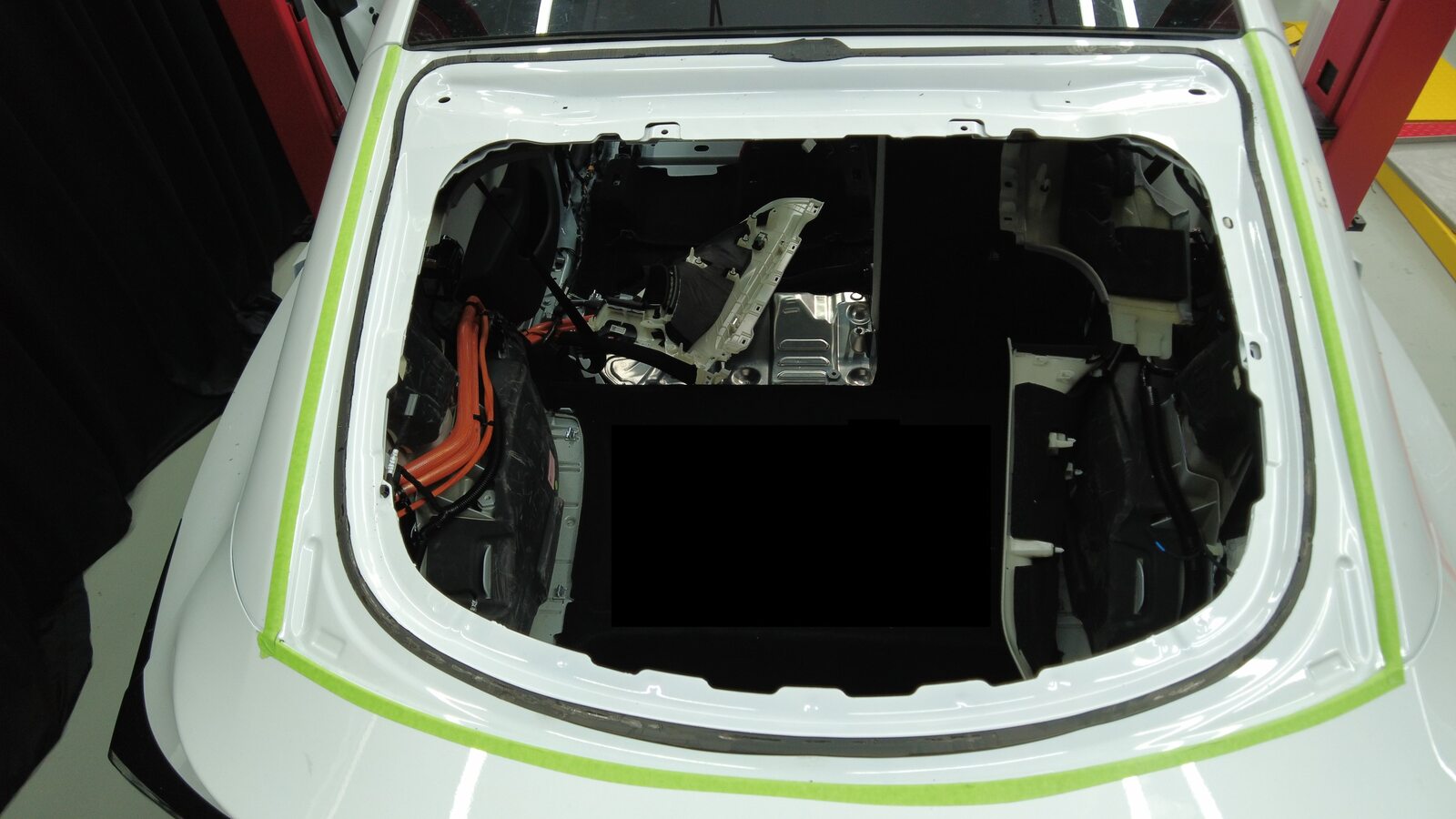 揭下掀背尾门上的遮蔽胶带。