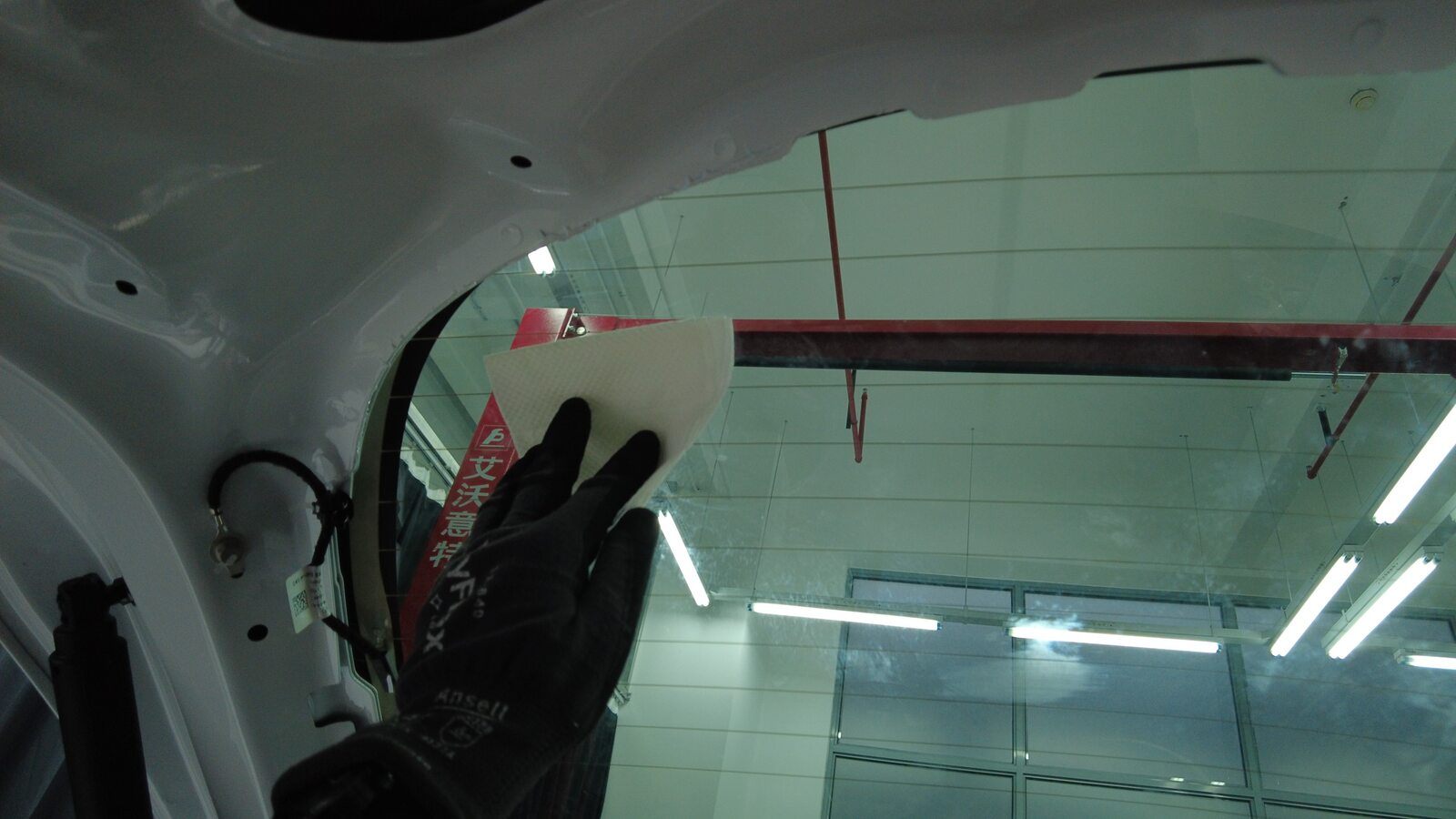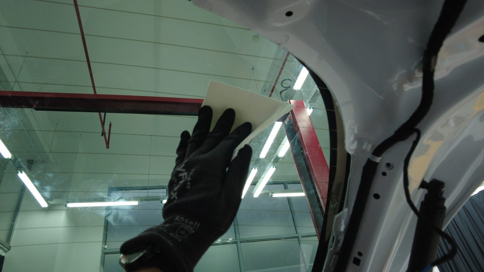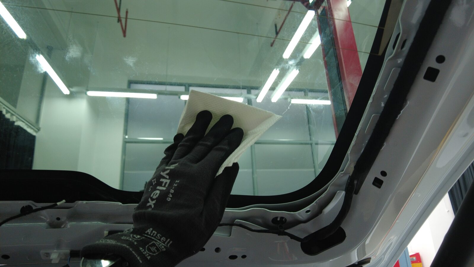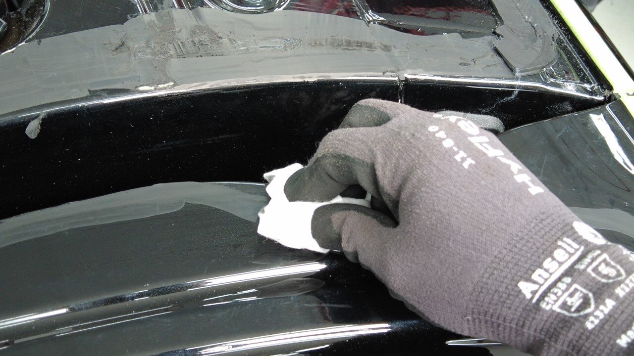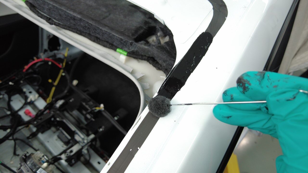 使用异丙醇 (IPA) 湿巾擦拭掀背尾门上的聚氨酯路径。待表面风干之后,再继续进行下一步。