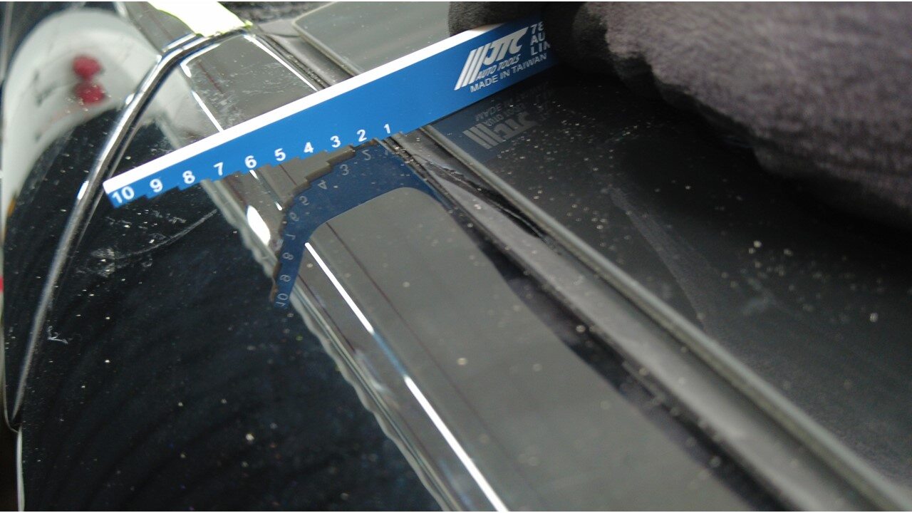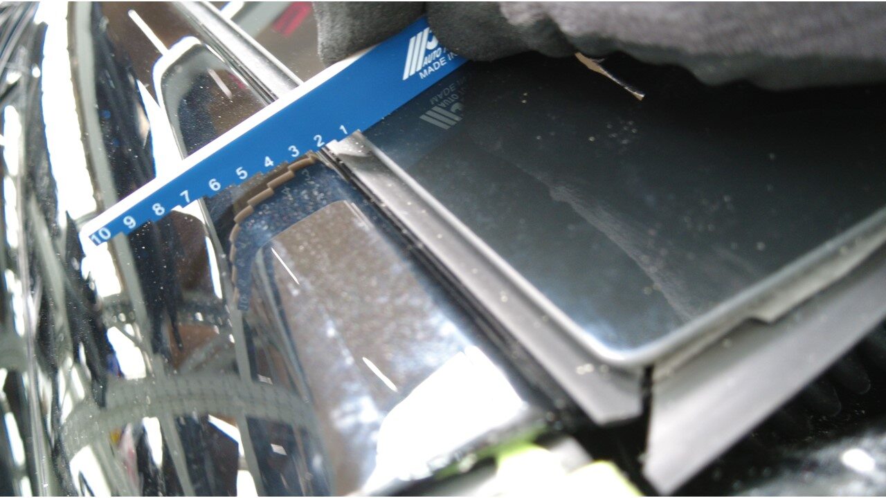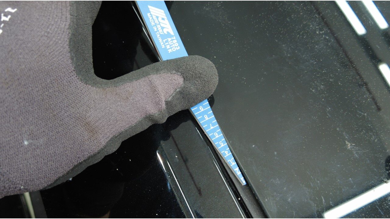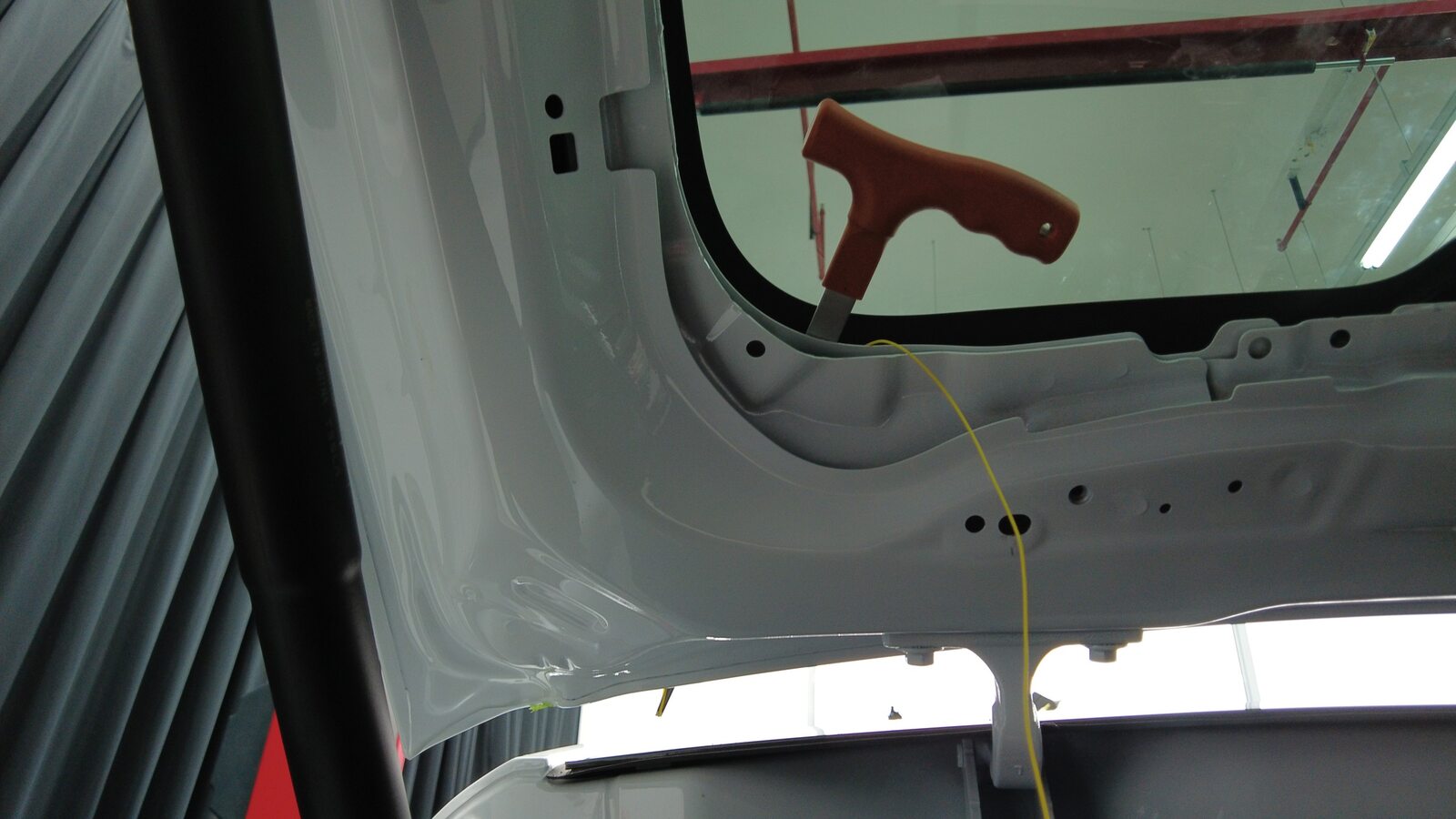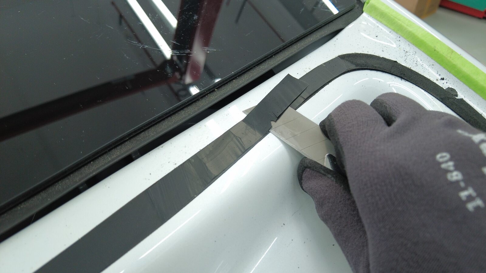 使用剃须刀片,小心地清除掀背尾门上的旧聚氨酯。