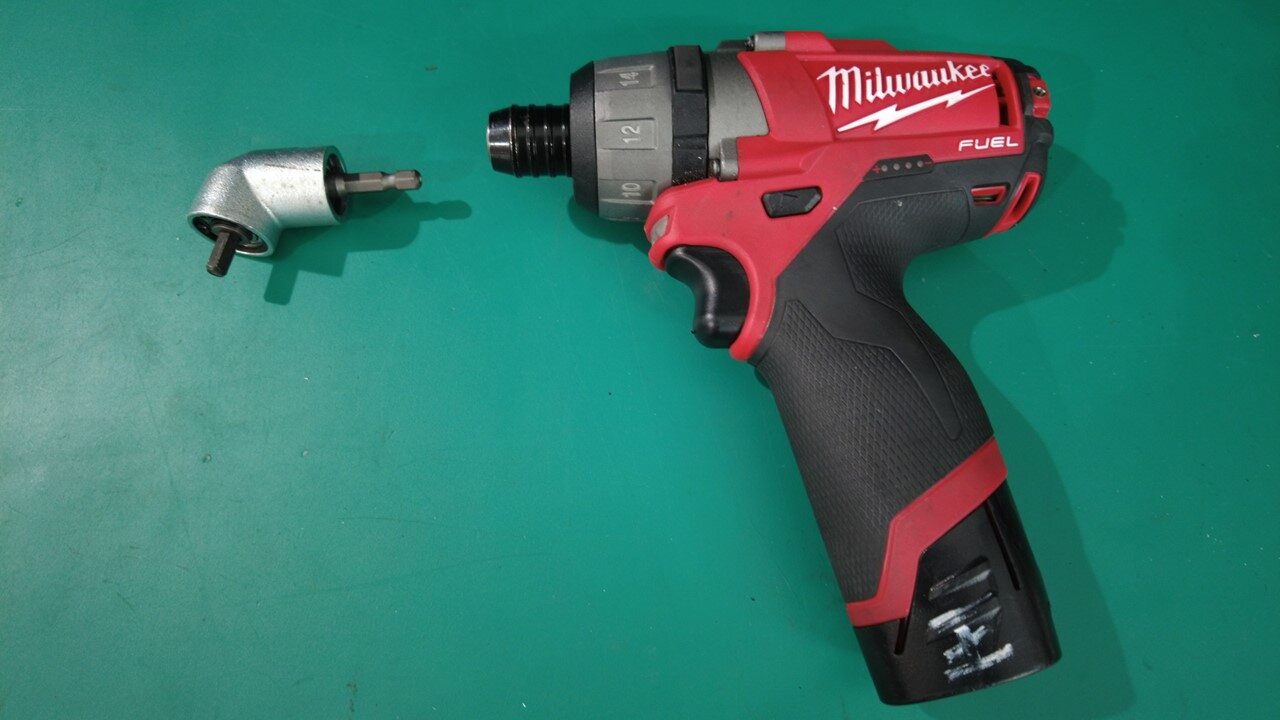 将直角螺丝刀固定到电钻上。