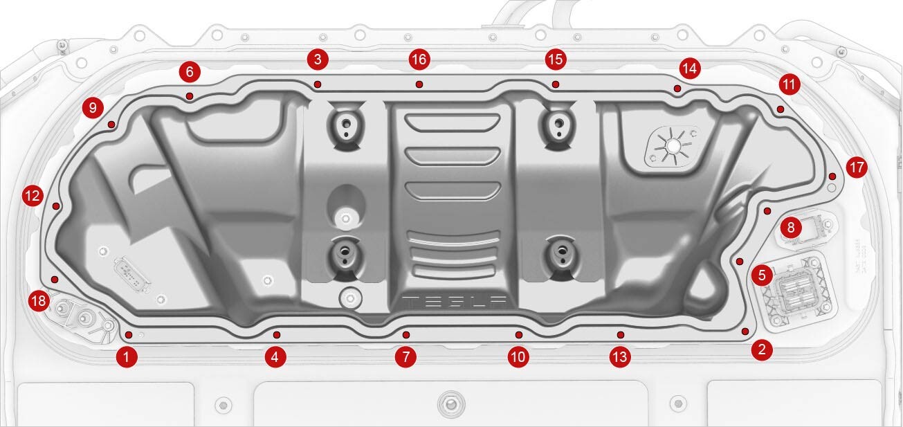 | 将高压电池仓盖板固定到高压电池的螺栓(18 个) |