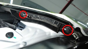 拆下将前饰板左角固定到左前翼子板的螺栓。
