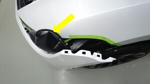 - 揭下前饰板左角周围的遮蔽胶带。