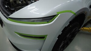 沿左侧前照灯和前翼子板粘贴遮蔽胶带,以保护车漆。