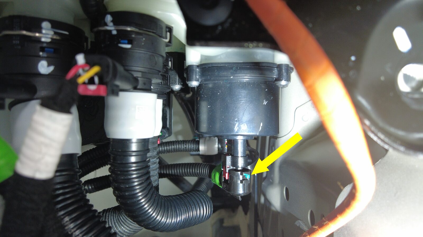 连接动力总成冷却液泵连接器。