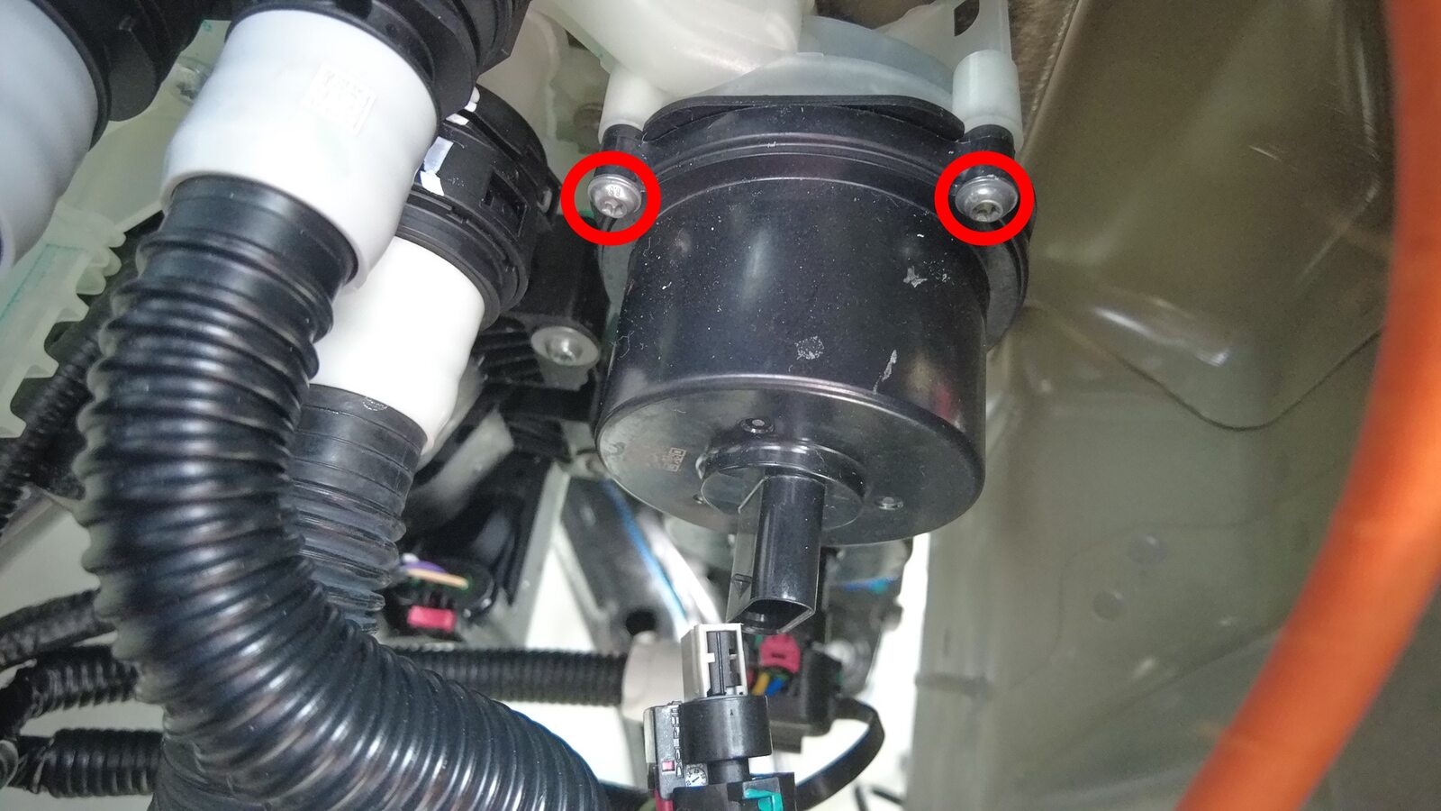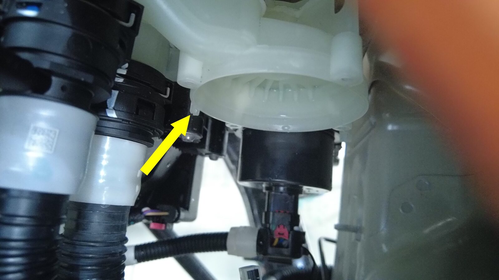 断开动力总成冷却液泵连接器。