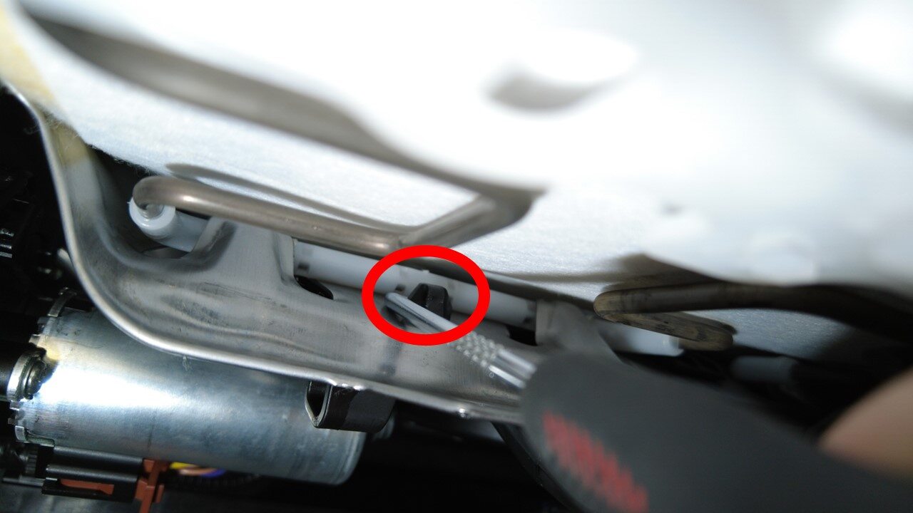 按压固定夹,将座椅占用传感器从座椅底部拆下。