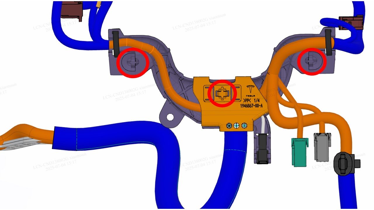 紧固卡子(3 个),将座椅线束支架安装到驾驶位座椅总成上。